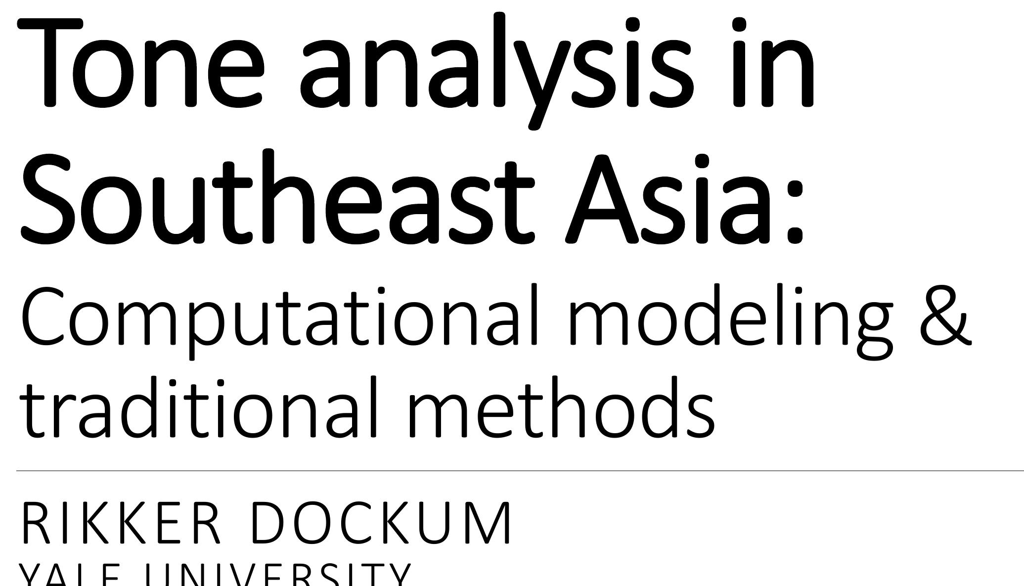 Such comparison enables mutual methodological improvement. Computational modeling can help to strengthen existing analyses, where fieldworker expertise often varies. Moreover, linguists experienced in traditional methods can help to further delineate and refine the usefulness of the newer quantitative methods, and explore new areas of linguistics to apply them in. By so doing we can achieve more sophisticated and increasingly nuanced understanding of tonal phenomena in Southeast Asia and beyond.