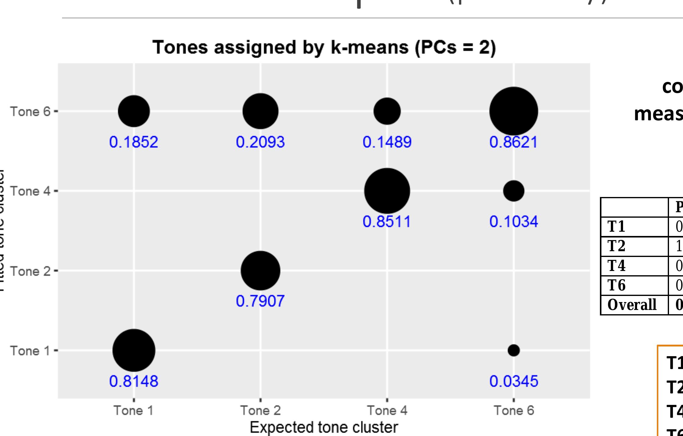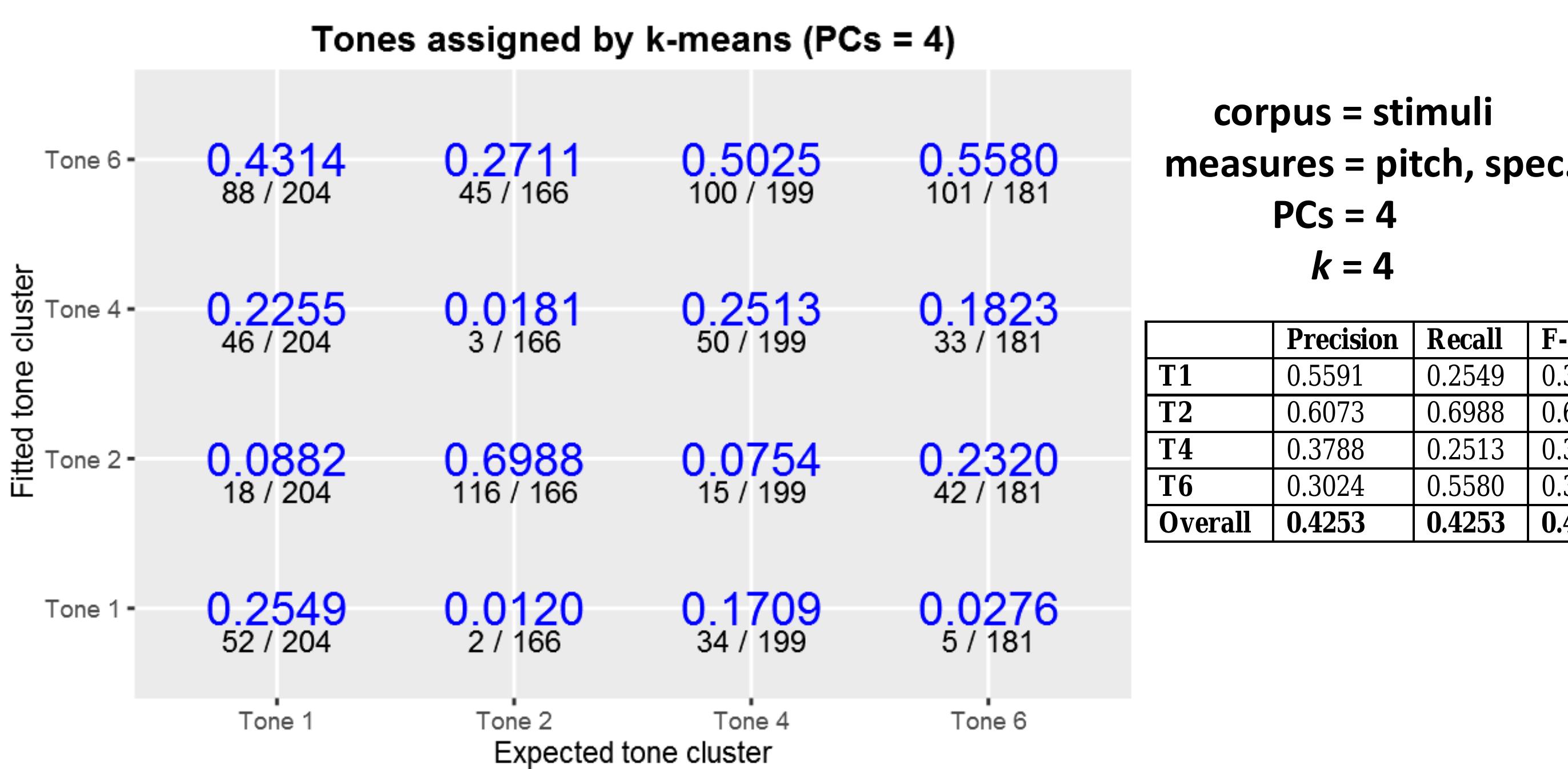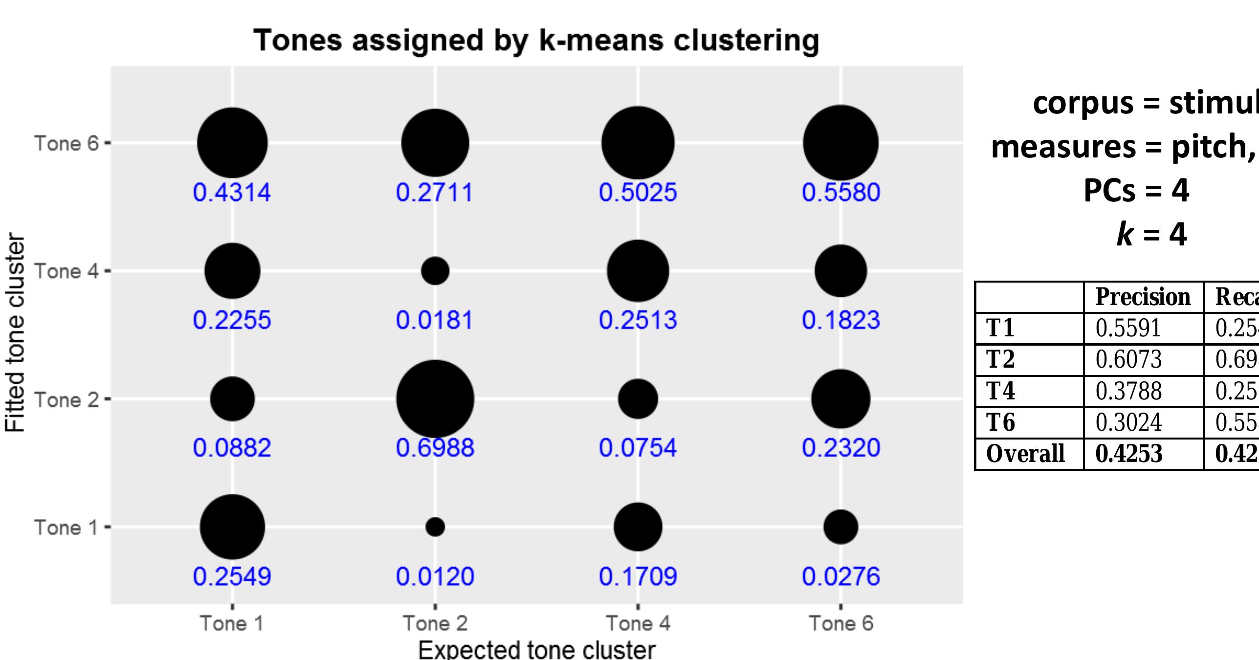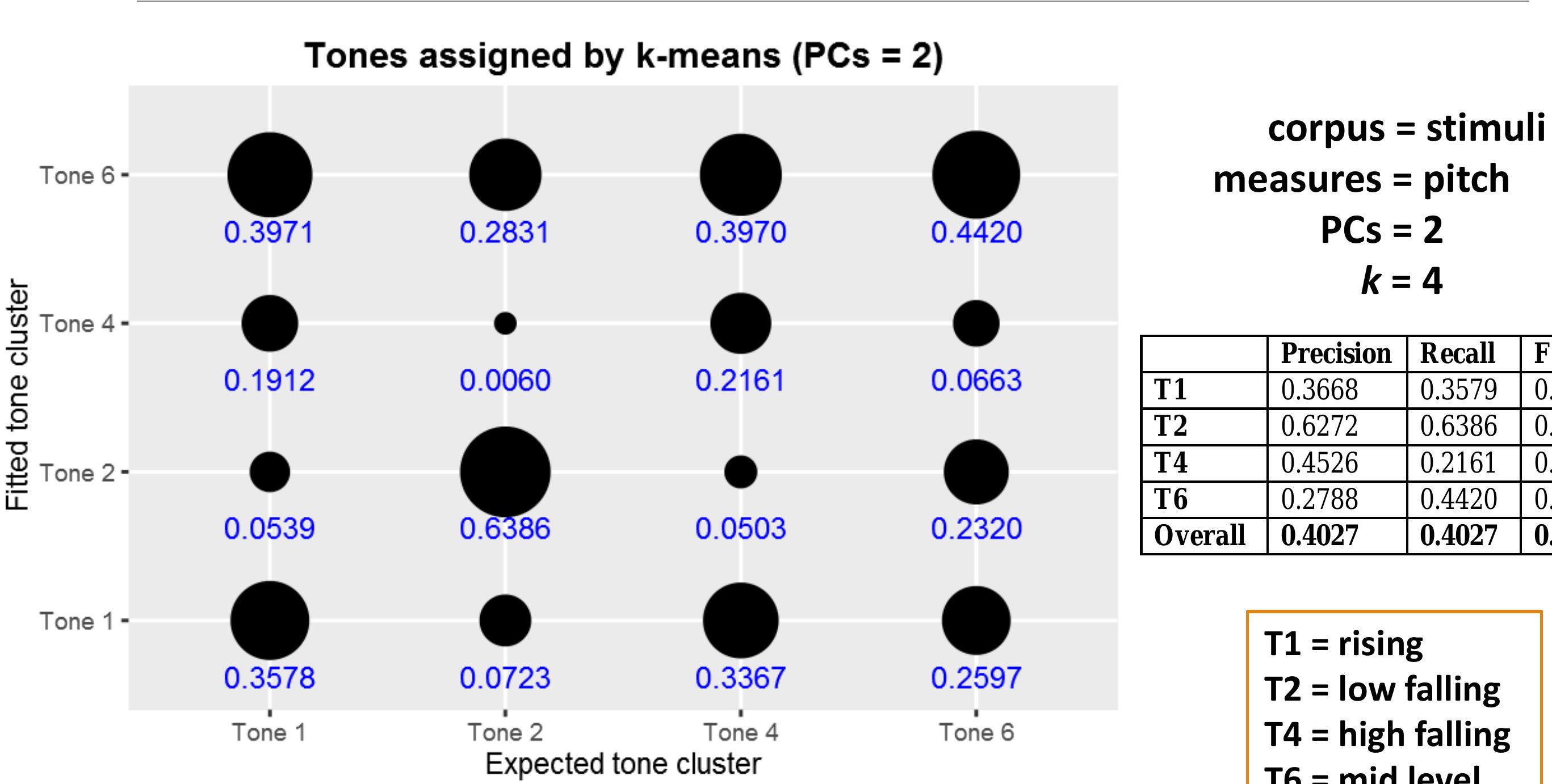Results such as these motivate the expanded use of computational methods in comparison with traditional methods. This study implements and expands on methods outlined in Shosted et al (2014), and applies them to Chindwin Khamti, a variety of Khamti [kht] spoken in Khamti District, Sagaing Region, Burma. Khamti tones were manually segmented and extracted, and then modeled using principal components analysis (Johnson 2008:95) and k-means clustering in R (R Core Team 2015). This paper compares the results of this modeling against the author’s earlier work assigning tone categories using traditional methods of researcher audition and instrumental analysis, in consultation with native informants.
