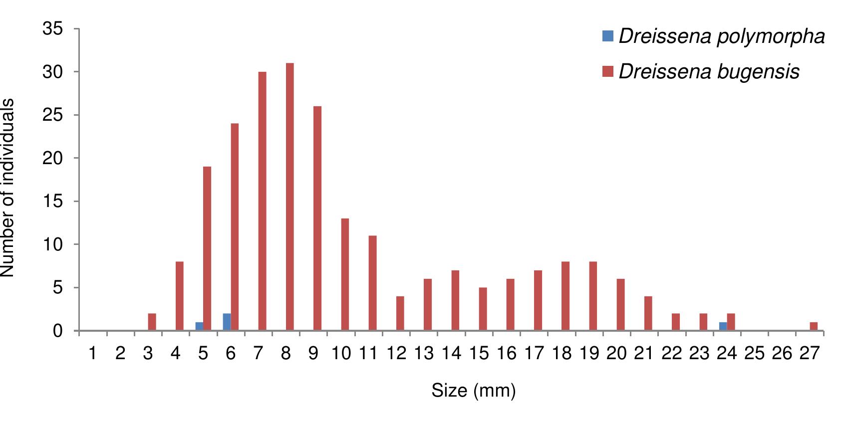 The benthic stages of Dreissenidae and Mytilidae may be dispersed over long distances while attac... more The benthic stages of Dreissenidae and Mytilidae may be dispersed over long distances while attached to ship hulls. Alternatively, larvae may be transported by water currents and in the ballast and bilge water of ships and vessels. To gain insight into dispersal potential and habitat suitability, survival of the benthic stages of two invasive dreissenid species (Dreissena polymorpha and Mytilopsis leucophaeata) and one mytilid species (Mytilus edulis) chosen based on their occurrence in fresh, brackish and sea water, respectively, were tested in relation to salinity. They were exposed to various salinities in mesocosms during three long-term experiments at outdoor temperatures. Mussel survival was studied without prior acclimation, reflecting conditions experienced when attached to ship hulls while travelling along a salinity gradient from fresh or brackish water to sea water, or vice versa. Initially, mussels react to salinity shock by temporarily closing their valves, suspending ventilation and feeding. However, this cannot be maintained for long periods and adaptation to higher salinity must eventually occur. Bivalve survival was monitored till the last specimen of a test cohort died. The results of the experiments allowed us to distinguish favorable (f.: high tolerance) and unfavorable (u.: no or low tolerance) salinity ranges in practical salinity units (PSU) for each species, viz. for D. polymorpha 0.2-6.0 PSU (f.), 7.0-30.0 PSU (u.), for M. leucophaeata 0.2-17.5 PSU (f.), 20.0-30.0 PSU (u.) and for M. edulis 10.5-36.0 PSU (f.), 0.2-9.0 and 40 PSU (u.). At the unfavorable salinities, all mussels died within 14 days of initial exposure with the exception of M. edulis (23-30 days). The maximum duration of survival of single specimens of D. polymorpha was 318 days at a salinity of 3.2 PSU, of M. leucophaeata 781 days at 15.0 PSU and of M. edulis 1052 days at 15.0 PSU. The number of days survived was compared with the duration of actual ship voyages to estimate the real world survival potentials of species dependent of salinity changes, travel distances and durations. The conclusion is that salinity shocks during the trip were survived within the favorable salinity range but that the species tolerate only for a few weeks the unfavorable salinity range. This functions as a barrier for dispersal. However, at faster and more frequent shipping in the future salinity can become no longer very important as a dispersal barrier.