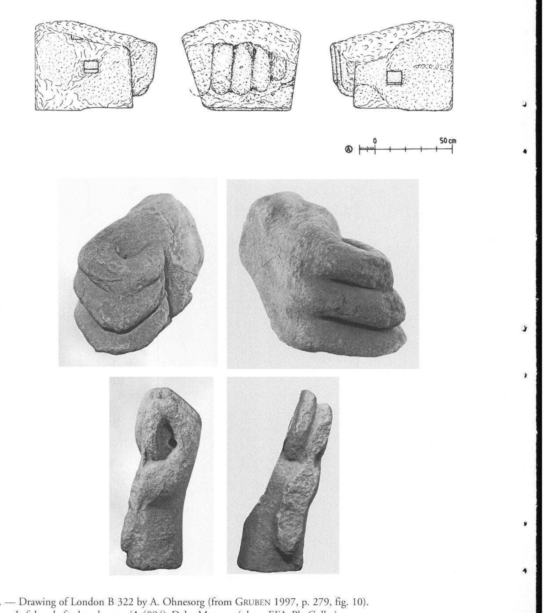 the best available means of understanding the highly debated inscription on the east side of the base: “I am of the same stone, statue and base.”