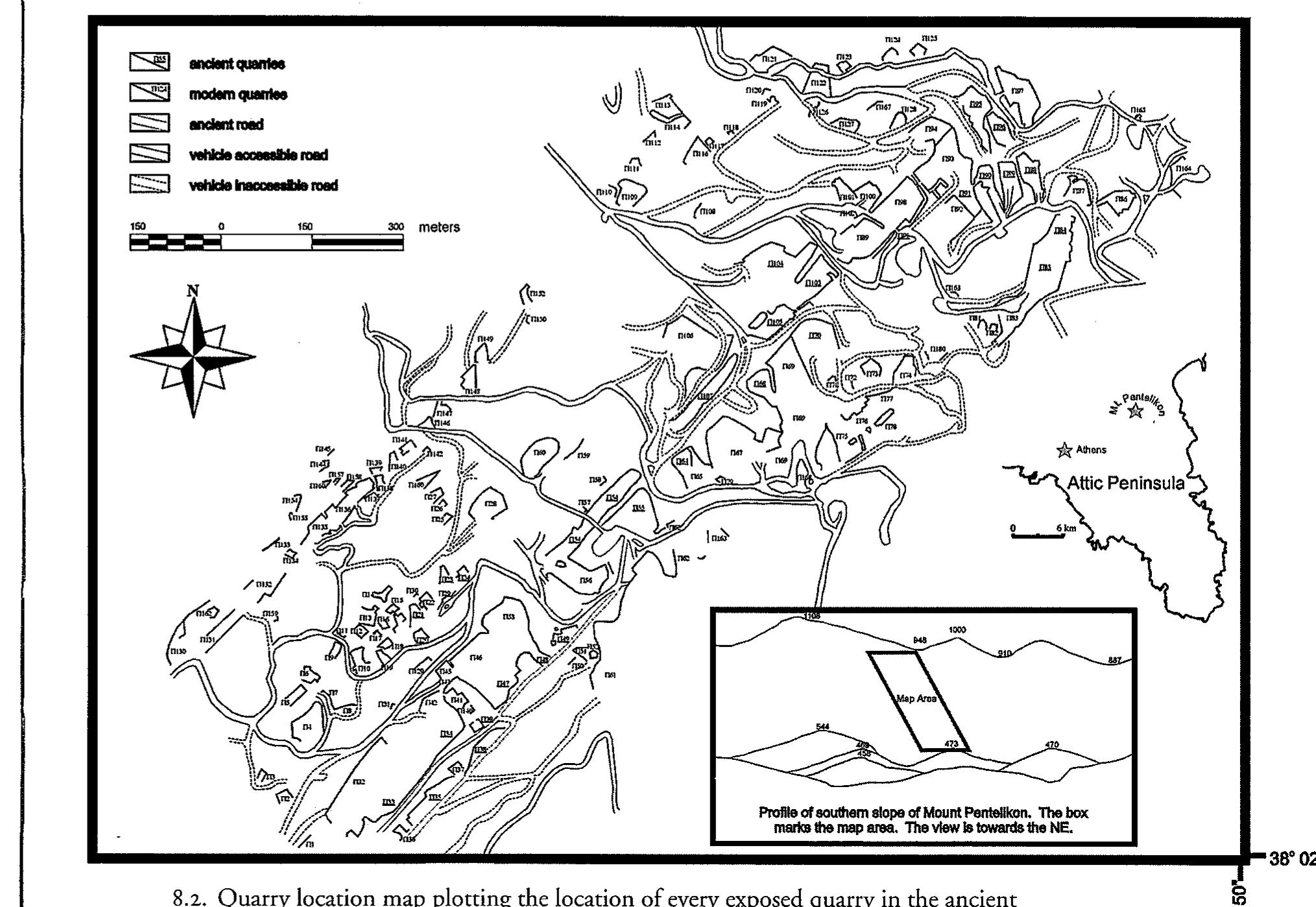 while the white marble was quarried at Mt. Pentelikon. The results moreover demonstrate that at least two distinct Pendeli quarry pits (Group 1 and Group 2) were employed for the construction of the building, and that both pits were possibly worked simultaneously and were capable of providing identical architectural elements. The concluding section considers the historical ramifications of these results for our understanding of the organization of quarry operations on Mt. Pentelikon in the Hellenistic period.