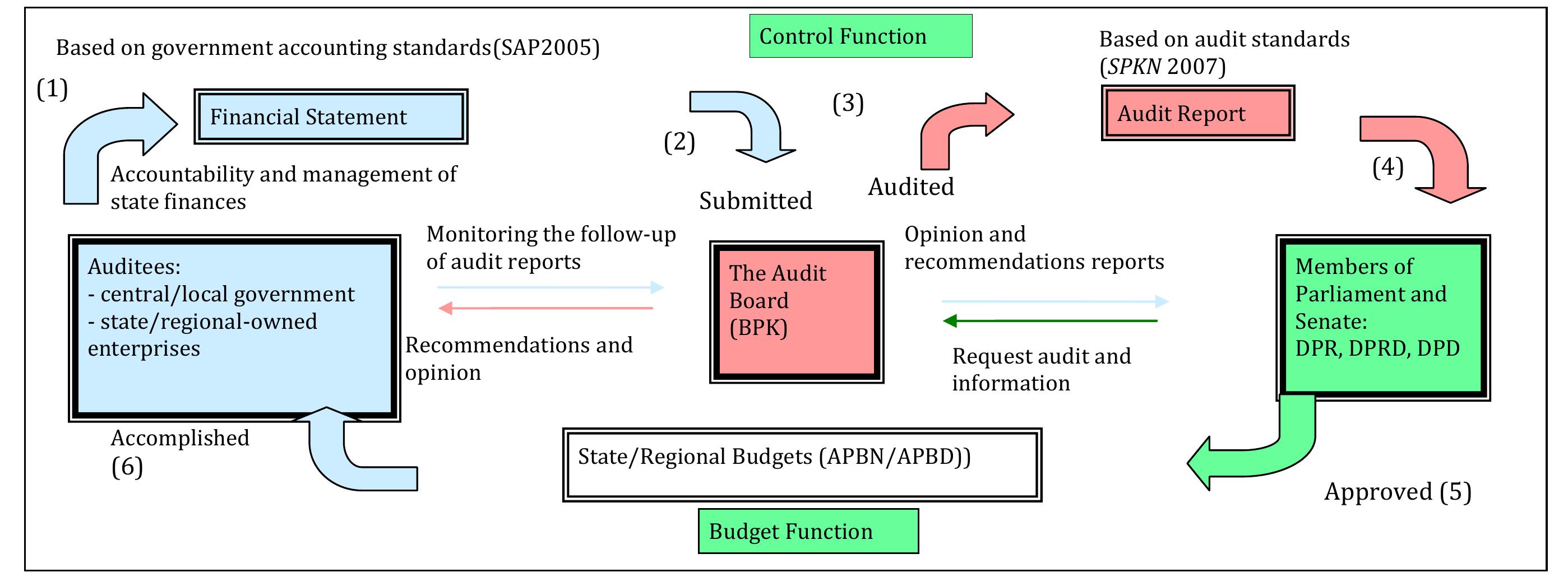 This paper examines how the coordination and relationship of the functions of BPK as auditors and the Parliament (central and local levels) as controller in state finances in Indonesia. BPK conducts consultations with the members to give some explanations about the audit findings, to answer any other questions from the members relating to information and data in audit reports. Since then, the members of Parliament, regional Parliament and senate have obtained guidance and clarification from BPK in consultation forums to help the members to understand the problems and the audit results. Besides, the consultations also provide guidance on procedures in following up and monitoring follows up of audit reports by government entities. These efforts have led to a positive response from the members of DPR and DPRDs who are starting to review the BPK reports more seriously and to force the government to follow up audit findings and recommendations. The members ask, remind, and pressure the government. As the members have rights to control the accountability of government and to approve the state or regional government budgets, the Parliament can push the government to follow up BPK’s audit findings and recommendations in line with its responsibility to be accountable in public administration.