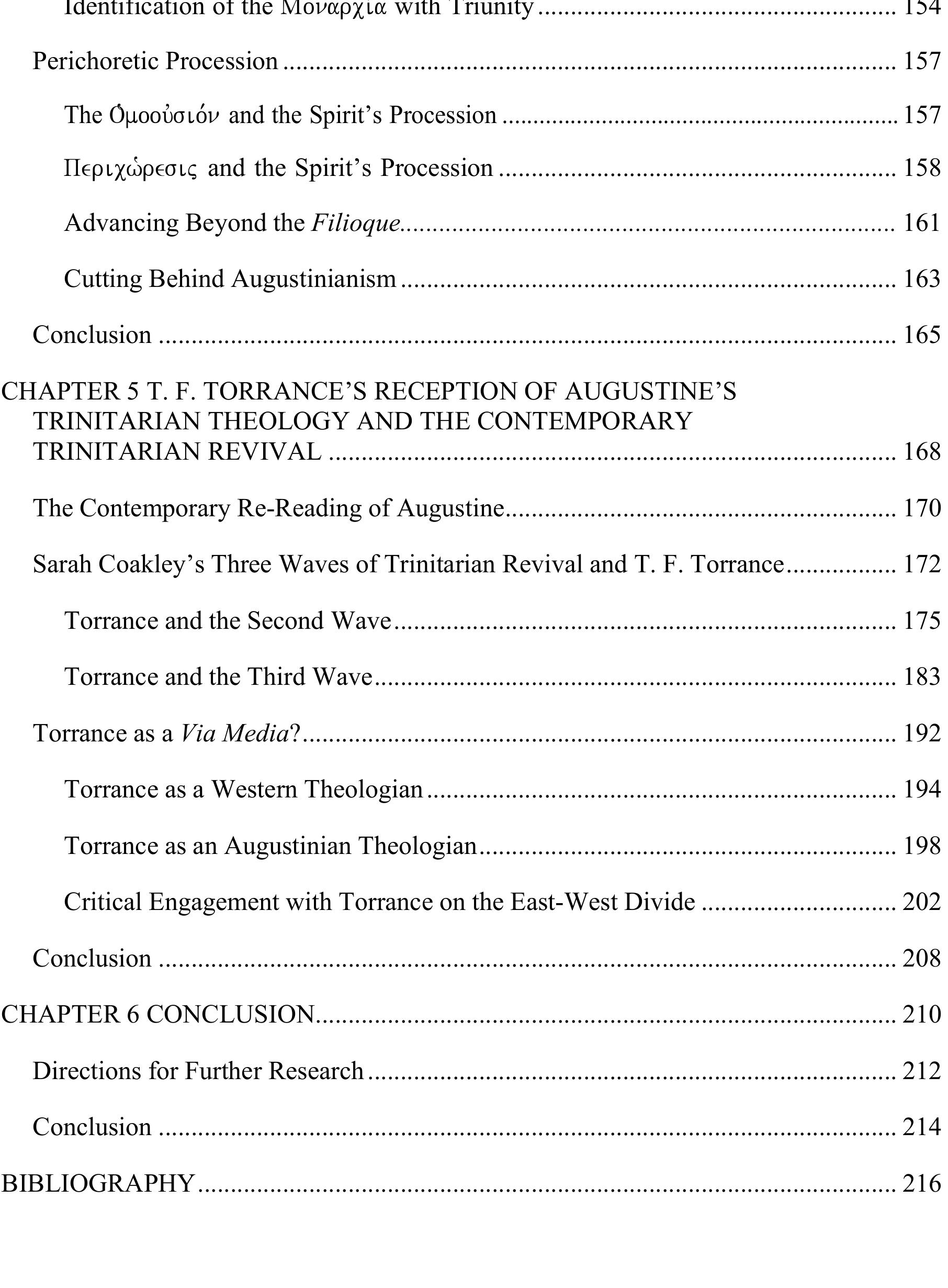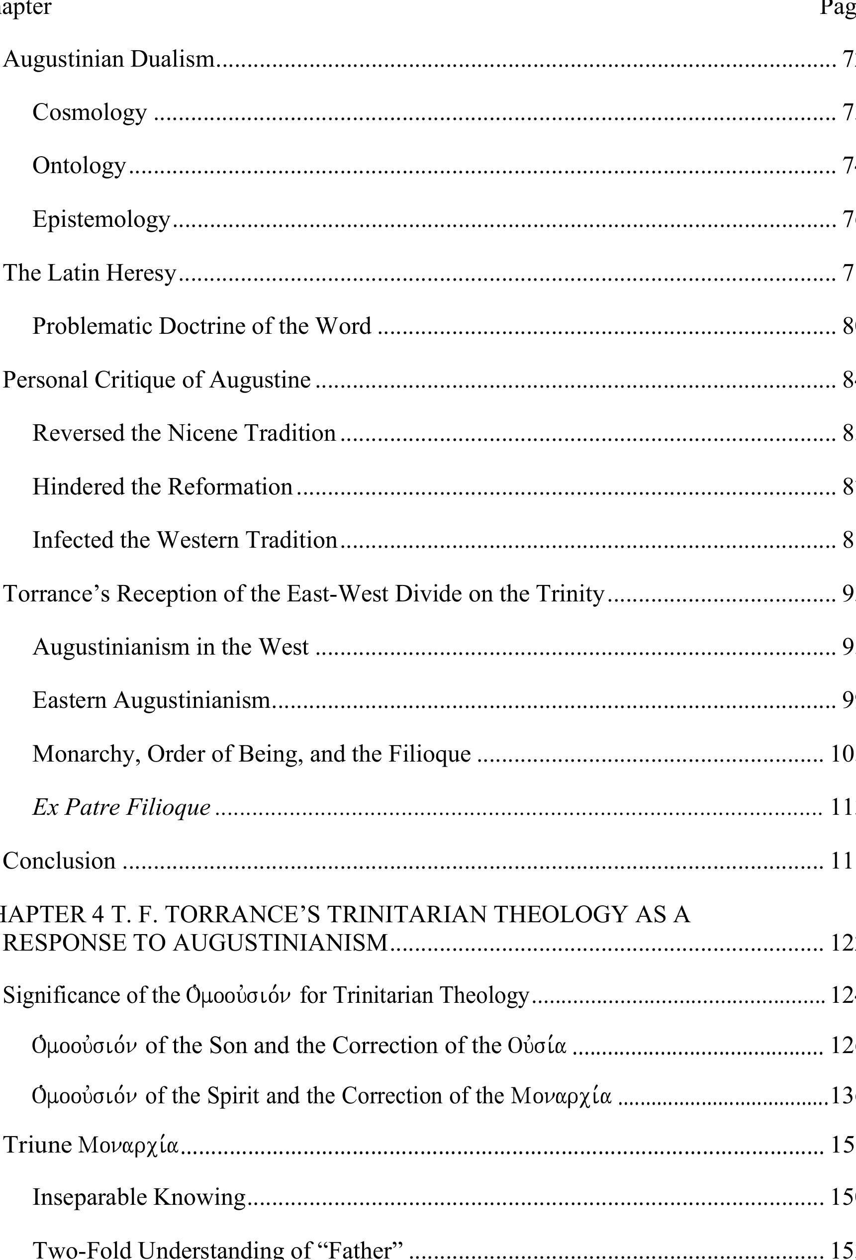 For Torrance, Trinitarian theology is an ecumenical endeavor. This thesis examines T. F. Torrance... more For Torrance, Trinitarian theology is an ecumenical endeavor. This thesis examines T. F. Torrance’s Trinitarian theology as it relates to his efforts toward ecumenical rapprochement across the East-West divide. More specifically, Torrance’s Trinitarianism must be understood in light of his criticism of Augustinianism, whereby he issues a consciously ‘contra-Augustinian’ Trinitarian ontology—specifically on the points of the “Triune monarchy” and “perichoretic procession.” The way to see the above is to filter Torrance’s Trinitarian theology through the lens of his dogmatic methodology—that is, his unique integration of historical, constructive, and ecumenical concerns. In the end, Torrance’s ecumenical advance on the Trinity is only possible by cutting behind the Augustinian dualism in both the West and East.