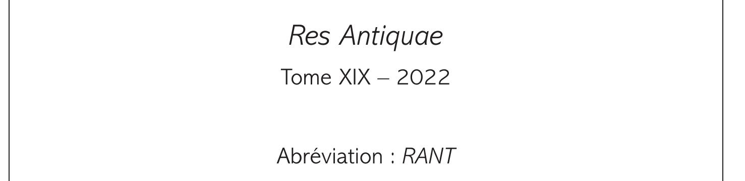 by Stéphanie ANTHONIOZ, in Res Antiquae 19, 2022.