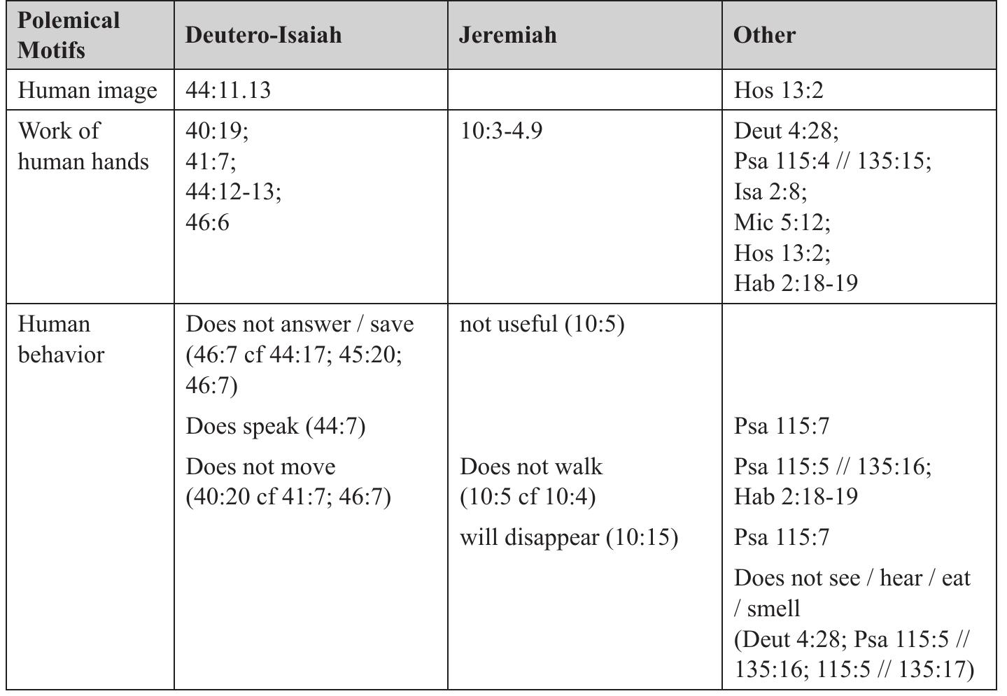 This paper examines the polemic against idolatry in the Hebrew Bible diachronically and comparatively, considering the Mesopotamian sources, re-evaluating them and, what is new, looking at and comparing ancient Greek sources. The first part clarifies what is meant by polemics against idolatry and determines what are the relevant biblical passages. Described are the practices denounced and analyzed their ideological purposes. The second part looks at the alleged Mesopotamian influence on this polemic, particularly in Deutero-Isaiah, since it is from this angle that the polemic has generally been considered. But the force of this comparison is limited, especially in view of the arguments and date. The third and last part shows that ancient Greek sources, particularly pre-Socratic ones, shed new light on the biblical critique of idolatry, even though, for religious reasons, the biblical material must clearly be distinguished from philosophical thought.