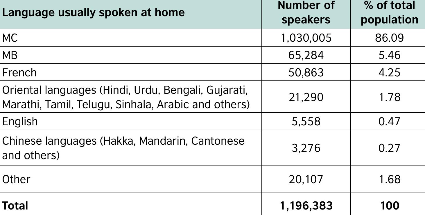 Figure 1 - from "Vernacular languages in an English-dominant education system: Mauritian Creole, Bhojpuri and the politics of ethnicity in multilingual Mauritius"