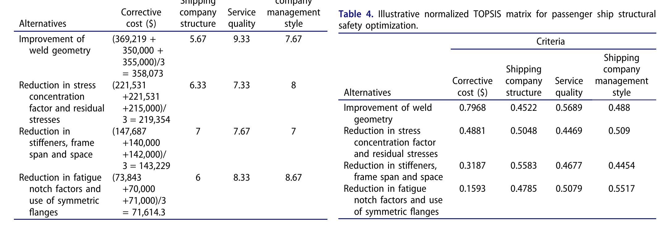 structures using discrete fuzzy set theory as an artificial intelligence method and Technique for Order Preference by Similarity to the Ideal Solution as a multi-criteria decision-making method is developed. The two algorithms are integrated in a logical manner to achieve ship structural safety optimization under uncertainty.