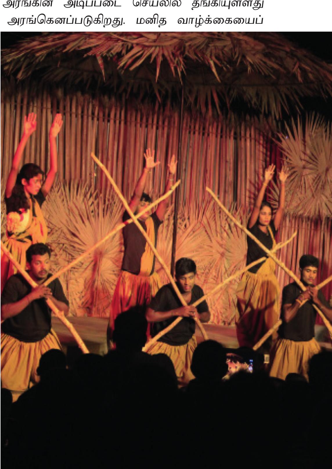 Tamil-speaking artists in Sri Lanka are in an oppressive environment. Active Theater Movement wan... more Tamil-speaking artists in Sri Lanka are in an oppressive environment. Active Theater Movement wants to triumph over this sort of environment and create a situation conducive to freedom of expression. The members believe that reviving the art forms traditionally found among Tamils is one way of exercising freedom of expression. Considering the revival and preservation of the art of drama as important, they commenced the revival and preservation work. The performing art of drama has an extraordinary capacity to attracting people. It can be said that when an artist makes flesh and blood expressions of his sentiments through his body language, the lively situation created by it cannot be equaled by any media. As a result, the exchange of ideas easily occurs through it. Literary creators can cross borders and develop whatever stories, articles or poetry desired. These creations can also