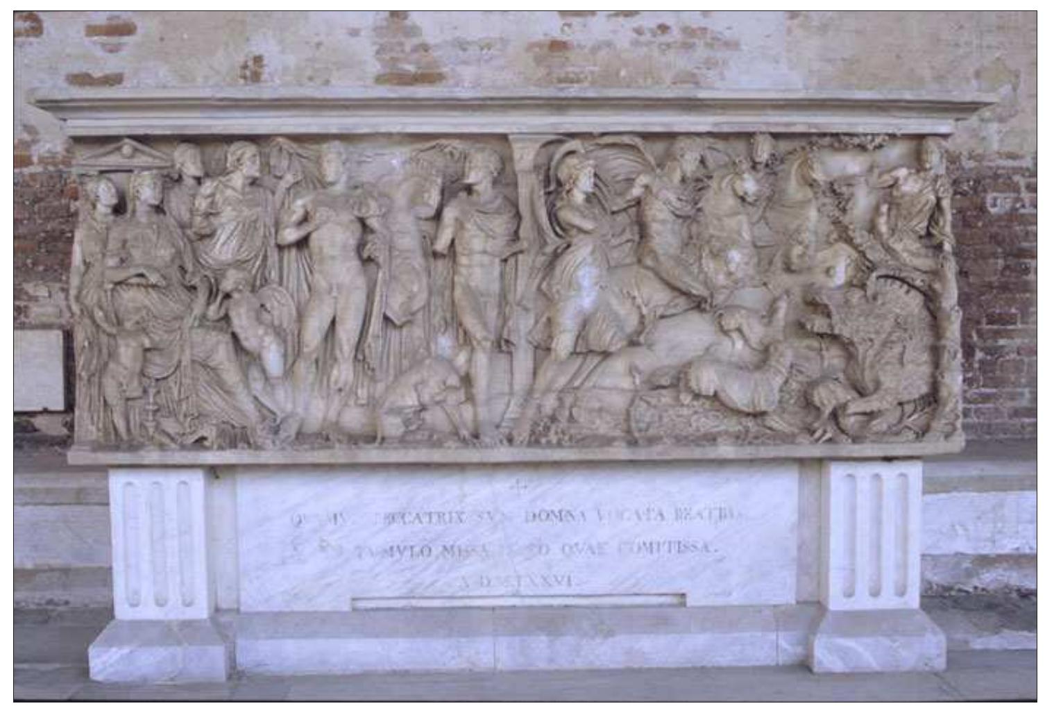 Beatrice of Lorraine, marchioness of Tuscany – and mother of the more famous Matilda of Tuscany –... more Beatrice of Lorraine, marchioness of Tuscany – and mother of the more famous Matilda of Tuscany – died in Pisa on April 18th 1076. Matilda arranged the details of her mother’s burial and Beatrice was entombed in the same Tuscan city, in an ancient sarcophagus dated by art historians to the second century AD, representing the legend of Phaedra and Hippolytus. The article analyses multiple evidences, trying to understand why Matilda of Canossa chose a so disturbing subject – the only case of feminine incest in ancient mythology – for the burial of her mother.
