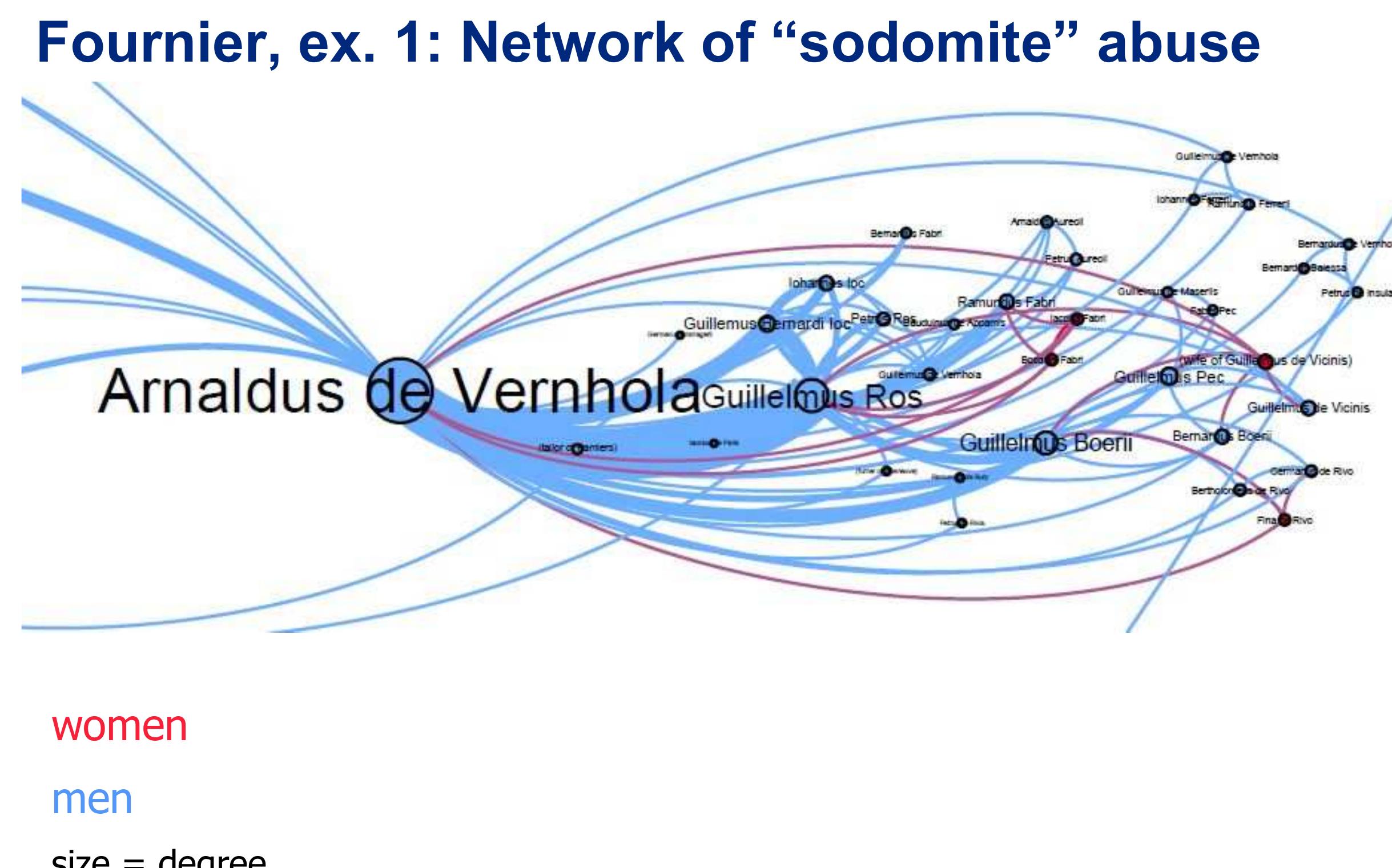 The role played by women in medieval dissident movements has been intensively discussed for decad... more The role played by women in medieval dissident movements has been intensively discussed for decades and various powerful examples, mainly from inquisitorial records, have been cited to illuminate this issue. However, the focus on individual cases necessarily leaves the larger questions unresolved. We lack entirely the big picture of women’s actual involvement and have no idea whether it was any different from that of men. Quantitative studies remain extremely scarce, and they rely on counting numbers of women (and men) or instances of preaching by women (and men). Social network analysis seems to be an extremely relevant approach capable of revealing the social microstructure of medieval dissident Christianity’s networks and shedding new light on this issue. The global question in this paper is whether there is any significant difference between the roles played by men and women as approximated by various network measures. The data is three large sets of inquisitorial records (1378, 827, and 1466 nodes) from Languedoc in 1270s-1320s when this area was an important laboratory of the early inquisition. The paper explores the possibilities and limits of social network analysis of data from inquisitorial records, automatically extracted from indices of personal names, and evaluates the validity of this method.