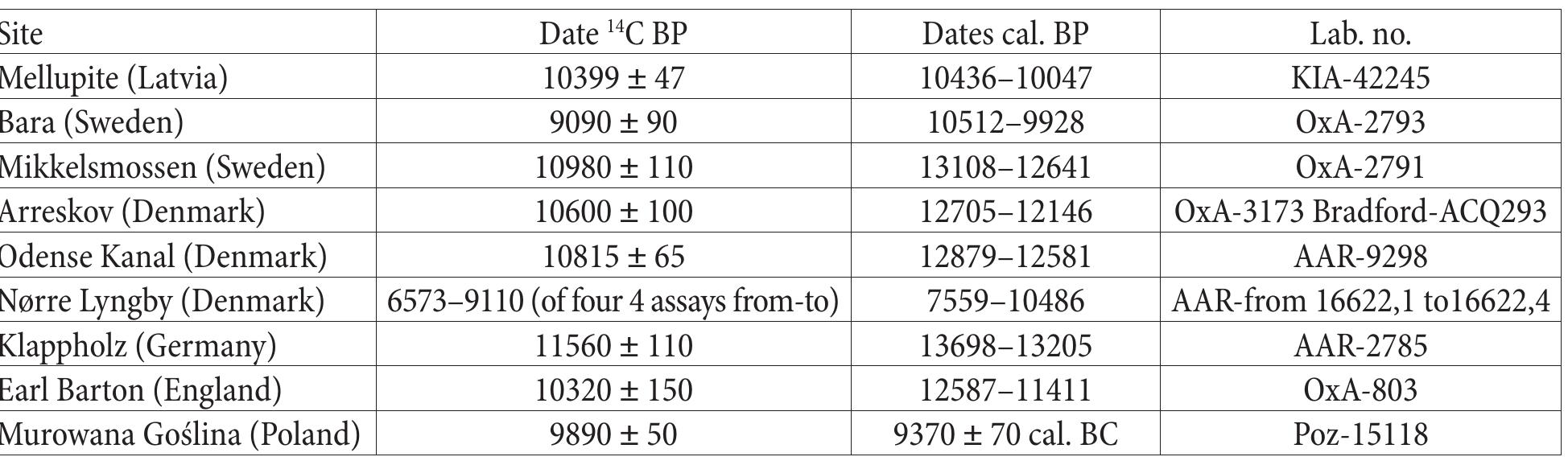Abstract. The article sets out to discuss the distribution, typology and chronology of Lyngby typ... more Abstract. The article sets out to discuss the distribution, typology and chronology of Lyngby type horn artefacts discovered in Northern Europe and the Eastern Baltic region for the first time in the Lithuanian scientific archaeological literature. Based on radiocarbon dating, the article makes a conclusion that the tools in question were used in the Eastern Baltic region both after the Last Glacial Period and before the Last Glacial Maximum. According to the latest research findings, two artefacts (Šnaukštai, Klaipėda district; Kalnėnai, Jurbarkas district) which were found on the Lithuanian territory are for the time being the only human-made artefacts dating to the period before the Late Nemunas Glacial Maximum, which were discovered in Lithuania and Northern Europe. According to radiological imaging, these finds were used both in the
