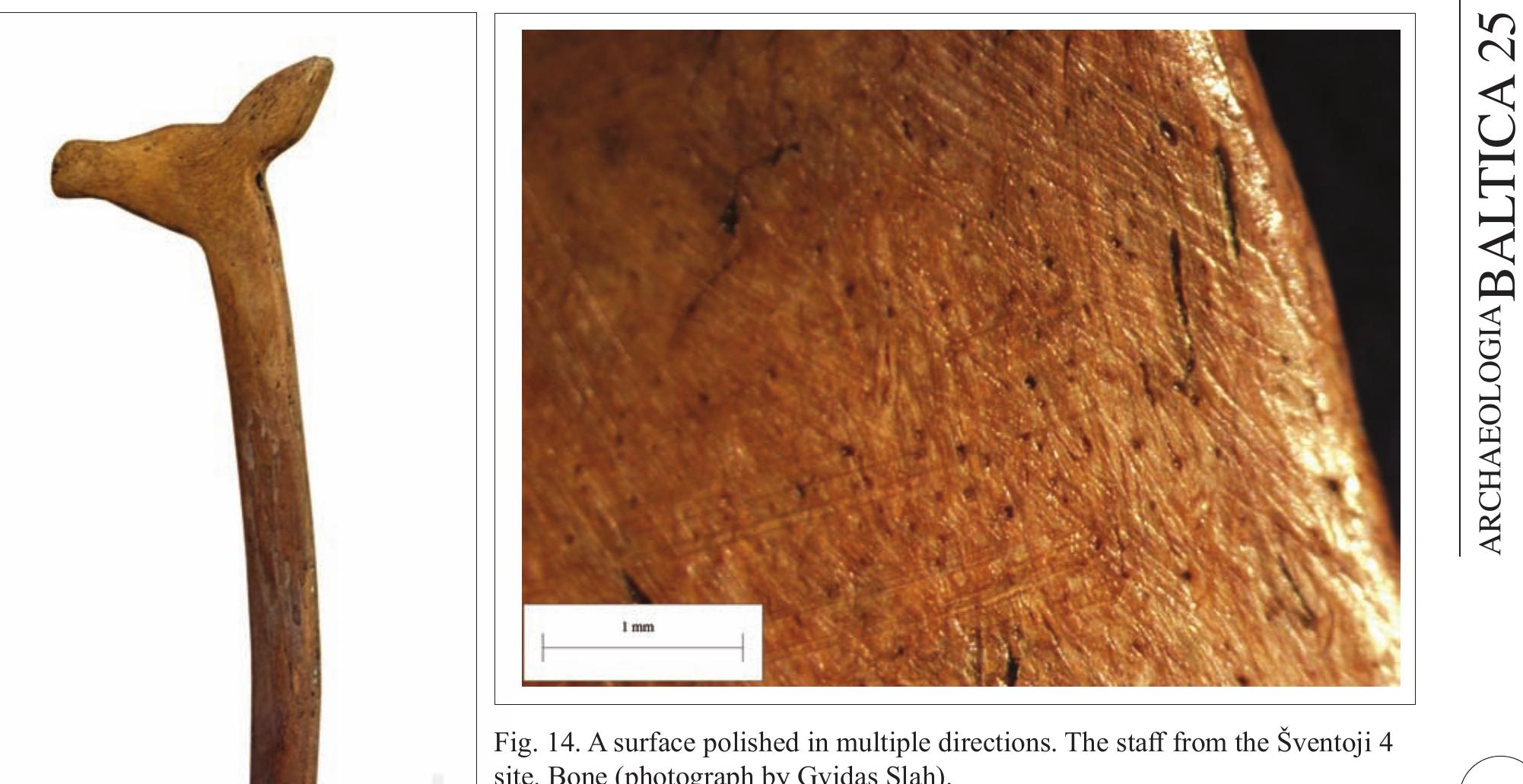 The elk staff is a characteristic Stone Age artefact from the Baltic region. The most elegant spe... more The elk staff is a characteristic Stone Age artefact from the Baltic region. The most elegant specimens have been found in the Olenij Ostrov burial site and various Stone Age sites in Šventoji. In 2016, the use-wear of artefacts found in the Stone Age sites of Šventoji was studied microscopically under a magnification factor of 690. The research effort also resulted in the successful dating of one of the staves found at the third archaeological site of Šventoji. The article presents the results and findings of the study, supplementing what is already known about the artefacts.
