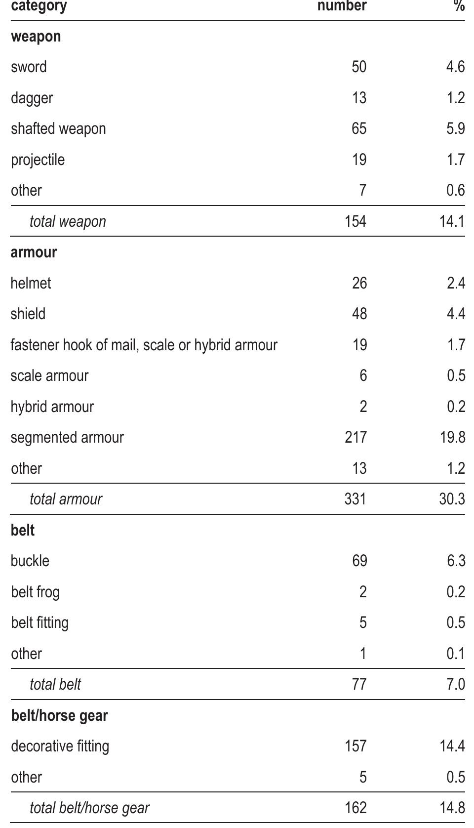 of features and finds, including over 1,000 items of military equipment and horse gear. These