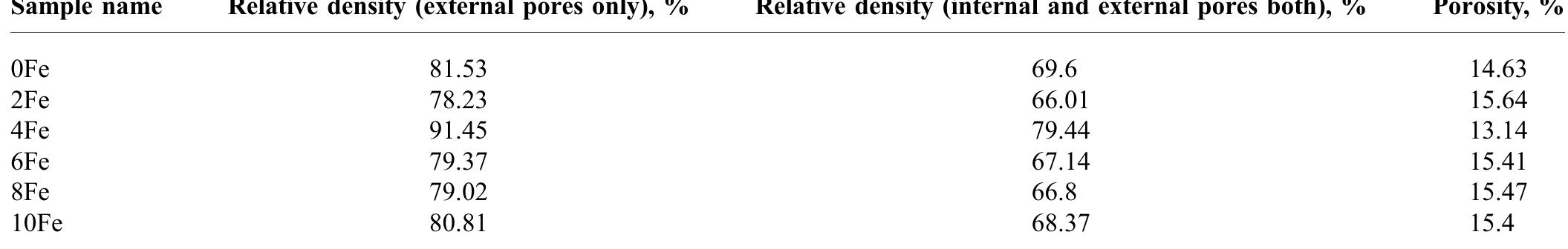 This paper investigates the microstructure and mechanical properties of Ti 50 Ni (50ÀX) Fe X allo... more This paper investigates the microstructure and mechanical properties of Ti 50 Ni (50ÀX) Fe X alloys fabricated by powder metallurgy technique. Here, sintering temperatures varied from 1100°C to 1200°C for the compacted milled powder mixture. Microstructure, chemical composition, phase formation, porosity, density, hardness, wear, shape memory effect, and compressive strength of the sintered sample were carried out using SEM, EDS, XRD, and mechanical tests, respectively. The SEM and XRD analysis results show that the microstructure of alloys consists of (Ni, Fe)-rich, Ti-rich phases with less retained pore. The densification and hardness increase with increasing the sintering temperature. The 4 at. pct Fe sample sintered at 1200°C shows higher densification, a lower friction coefficient, and a higher hardness value. The 4 at. pct Fe sample sintered at 1150°C shows higher compressive, and yield strengths of 132.57 and 116.86 MPa, respectively, and the 6 at. pct Fe sample sintered at 1200°C shows a higher shape memory effect of 3.37 pct, which are higher in comparison to other compositions and other sintering temperature samples. Abrasive wear of the sample has been carried out, and it found that there is a decrease in friction coefficient value with an increase in sintering temperature from 1150°C to 1200°C of the sample.