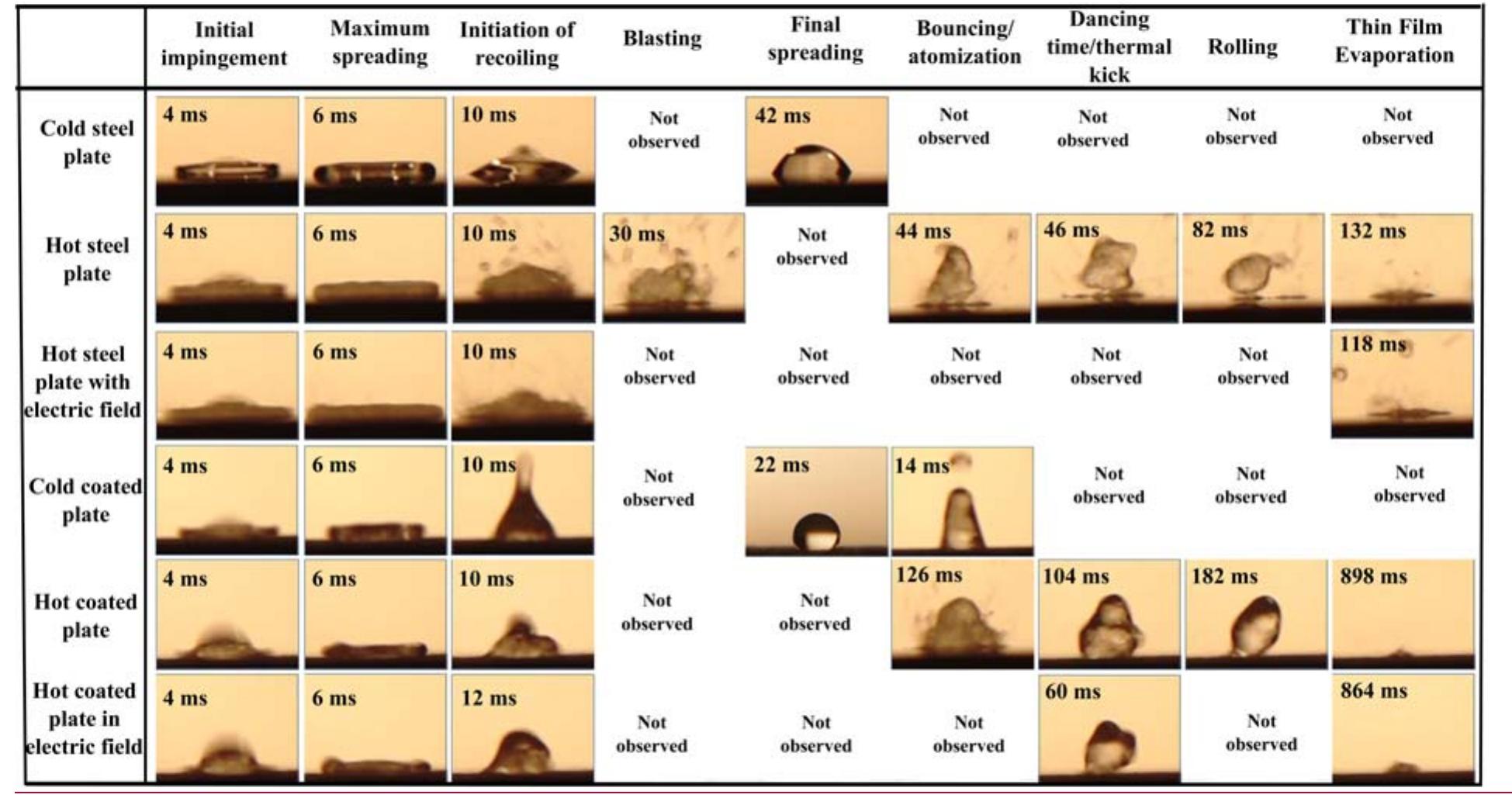 In the current work, by using NiTi plasma spray, superhydrophobic property is developed for compr... more In the current work, by using NiTi plasma spray, superhydrophobic property is developed for compressor parts used in aerospace engine. The durability of the coating enhances in case of droplet impingement in cold condition (temperature = 25 °C). For the hot condition the aforesaid coating needs to become hydrophilic for the retention of high durability characteristic. The discussed switching is achieved by keeping the coating with in an influence of electric field. The results revealed that the surface roughness (12.4 µm) of the coating supports the attainment of superhydrophobic characteristic depicting contact and rolling angle of 164° ± 1.5 and 8° ± 1, respectively at normal condition. By applying electric field, the coating is converted to hydrophilic in hot condition noticed by impact mapping of droplets. Furthermore, it has been observed that the coated steel plate shows better efficiency as compared to uncoated steel plate under electric field.