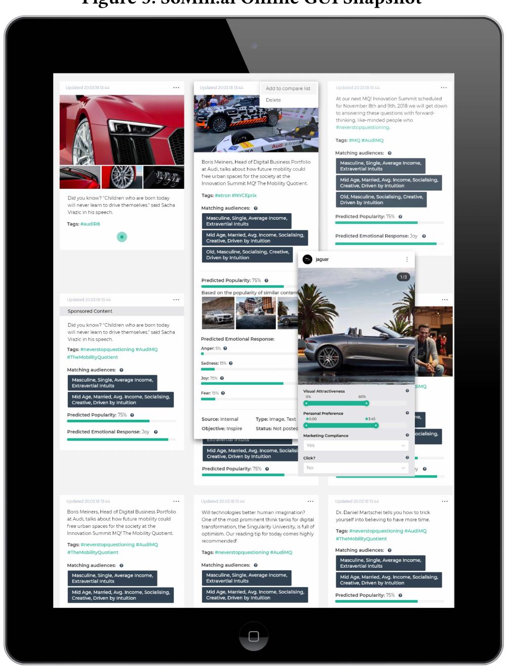 In this technical demonstration, we showcase the World's first personality-driven marketing conte... more In this technical demonstration, we showcase the World's first personality-driven marketing content generation platform, called SoMin.ai [7]. The platform combines deep multi-view personality profiling framework and style generative adversarial networks facilitating the automatic creation of content that appeals to different human personality types. The platform can be used for enhancement of the social networking user experience as well as for content marketing routines. Guided by the MBTI personality type, automatically derived from a user social network content, SoMin.ai generates new social media content based on the preferences of other users with a similar personality type aiming at enhancing the user experience on social networking venues as well diversifying the efforts of marketers when crafting new content for digital marketing campaigns. The real-time user feedback to the platform via the platform's GUI fine-tunes the content generation model and the evaluation results demonstrate the promising performance of the proposed multi-view personality profiling framework when being applied in the content generation scenario. By leveraging content generation at a large scale, marketers will be able to execute more effective digital marketing campaigns at a lower cost.
