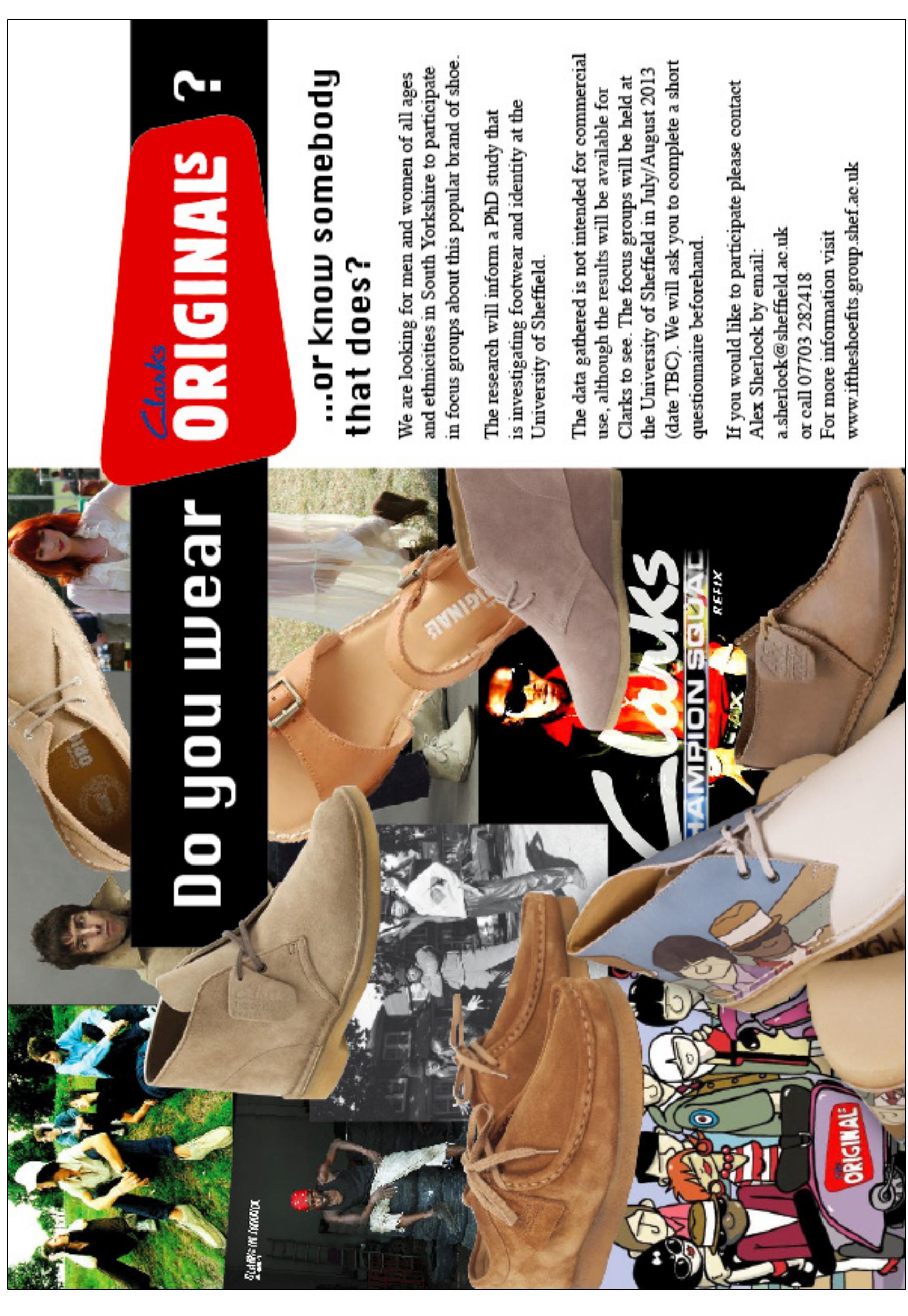 According to Benstock and Ferris (2001: 67) “Shoes are hot”: from calendars, magazines, coffee-ta... more According to Benstock and Ferris (2001: 67) “Shoes are hot”: from calendars, magazines, coffee-table books, postcards, fridge magnets and book covers to visual references in film, television and the popular press, shoes are everywhere. But how do these representations affect everyday embodied experiences of wearing shoes, and to what extent are these representations informed by these experiences? This paper takes a sociological and anthropological approach that departs from traditional semiotic interpretations of images to give an empirically grounded insight into the co-constitutive relationship between representations and embodied experiences of this ubiquitous item of material culture. Following several months of interviews and observations at Clarks UK headquarters, the Originals Desert Boot, steeped in a rich history within visual culture, has emerged as a case study through which to understand this relationship. The Desert Boot despite its perhaps distinctly un-remarkable appe...