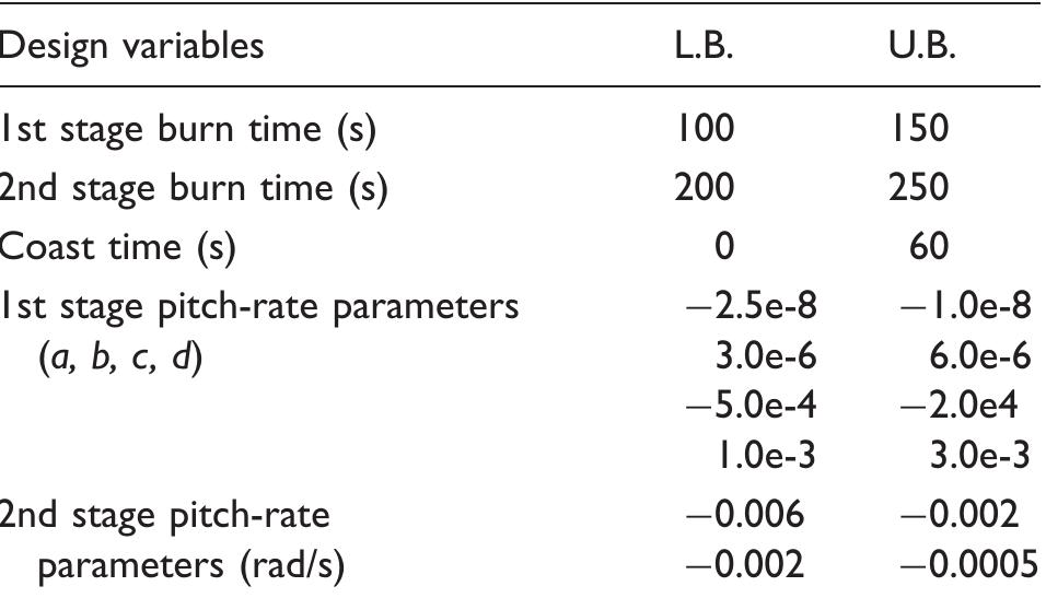 Robustness and reliability of the designed trajectory are crucial for flight performance of launc... more Robustness and reliability of the designed trajectory are crucial for flight performance of launch vehicles. In this paper, robust trajectory design optimization of a typical LV is proposed. Two formulations of robust trajectory design optimization problem using single-objective and multi-objective optimization concept are presented. Both aleatory and epistemic uncertainties in model parameters and operational environment characteristics are incorporated in the problem, respectively. In order to uncertainty propagation and analysis, the improved Latin hypercube sampling is utilized. A comparison between robustness of the single-objective robust trajectory design optimization solution and deterministic design optimization solution is illustrated using probability density functions. The multi-objective robust trajectory design optimization is executed through NSGA-II and a set of feasible design points with a good spread is obtained in the form of Pareto frontier. The final Pareto fro...