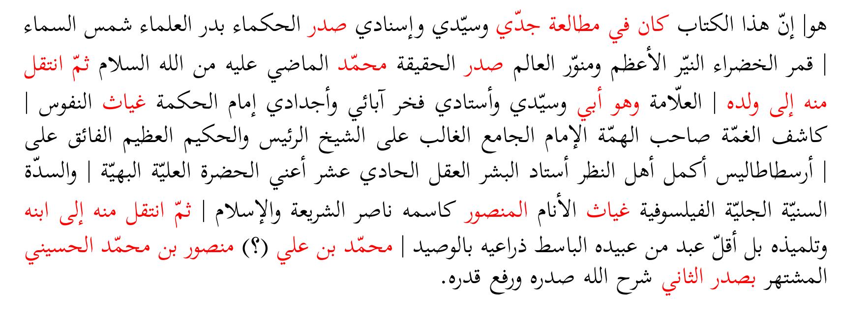 A lithographic print of Avicenna’s (Ibn S ̄ına ̄, d. 1037) metaphysical mas- terpiece – the Science of Divine Things (Ila ̄hiyya ̄t) from the Book of the Healing (Kita ̄b al-Šifa ̄ʾ) – published in Tehran between 1885 and 1888 presents a vast and interesting exegetical apparatus, which can be defined overall as ‘marginal’: it partly precedes the text of the Ila ̄hiyya ̄t (the lithograph opens with the commentary on the first six treatises of the Ila ̄hiyya ̄t by Mulla ̄ S.adra ̄, d. 1050H/1640), partly surrounds it at the edge of the page (glosses by various other commentators of the 16th-18th centuries), partly inter- sperses with it (interlinear notations taken from the manuscripts of the Ila ̄hiyya ̄t or from the exegesis of the commentators mentioned above).The contribution proposes a first attempt at a historical contextualization of this important witness of Iranian philosophical publishing at the end of the nineteenth century, classifying the multifaceted exegesis of the text of the Ila ̄hiyya ̄t contained in it; moreover, it highlights the organization of knowl- edge that emerges from the way in which the lithography places meta- physics before the natural philosophy of the Šifa ̄ʾ, and advances some hypotheses on the sources used by the editors and on the respective weight that they gave to Avicenna’s text and to the exegesis of his commentators within the work.