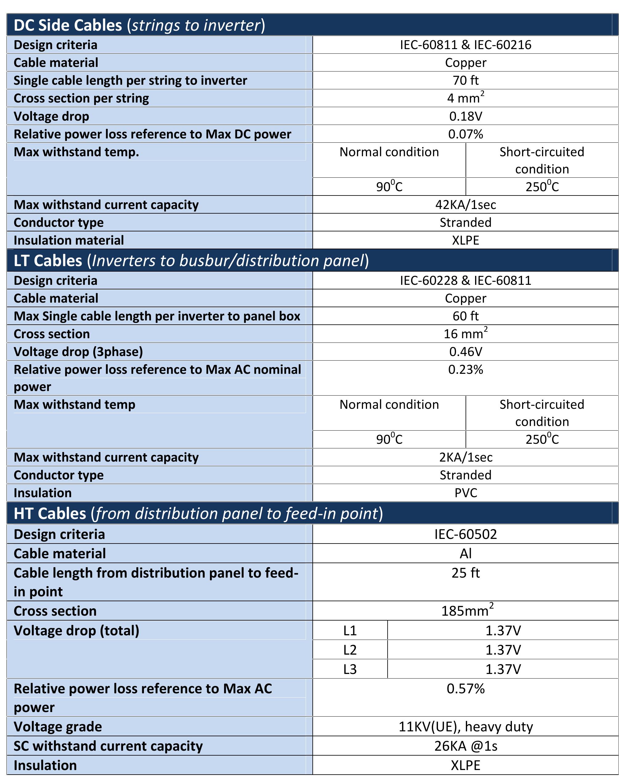 The sizing of AC conductors in grid-connected solar photovoltaic (PV) systems requires applicatio... more The sizing of AC conductors in grid-connected solar photovoltaic (PV) systems requires application of the IEC 60364-5-52 K-factor derating methodology, which corrects the base cable ampacity for four installation-specific parameters: burial depth (K1), ground temperature (K2), soil thermal resistivity (K3), and circuit grouping (K4). The combined derating factor-the product of all four K-factors-is applied to the base ampacity to determine the maximum permissible design current for a given cable cross-section. Voltage drop must be independently verified for both low-voltage (≤1kV) and highvoltage (>1kV) cable circuits using the appropriate formula for each voltage class and phase configuration. This article presents the complete mathematical framework for IEC-compliant AC cable sizing in PV systems, analyses the most common derating omissions and their thermal consequences, and introduces a freely accessible computational tool that applies this methodology against real cable data from a validated conductor database, supporting both LV and HV cable types across direct burial, free-air, and conduit installation methods.