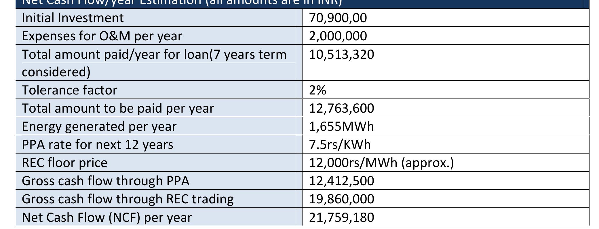 The project feasibility study report represents the data required to assess a solar PV project’s ... more The project feasibility study report represents the data required to assess a solar PV project’s techno-commercial viability at the very initial stage. The key features of the reports are – Climate data assessment, energy generation prediction throughout the plant’s lifecycle and the cash-flow of project including project initial & recurring investment, gross & net cash-flow, Project IRR, Payback, DSCR etc.