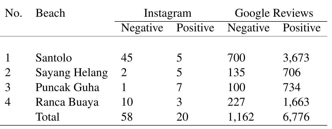 The Indonesian tourism industry continues to develop and has become the core of the nation econom... more The Indonesian tourism industry continues to develop and has become the core of the nation economy. Indonesia is known for its wealth of natural beauty, which can be used as a potential for tourism business. Garut is a city in Indonesia known for its beach, mountains, and culinary arts. The purpose of this study is to create a priority map of tourist attractions that can be utilized by local governments. Sentiment analysis was used 413,175 netizen comments via the social media platforms Instagram and Google reviews. Data was collected from January 2018-February 2019. The results show that the number of positive comments is significantly higher than the number of negative comments. Beach tourism a serious priority; not only is it the most preferred tourist attraction, but also the type that gets the most negative comments. While the main problem for Garut Regency tourism is hygiene, garbage is either overlapping or scattered, preventing Garut from having all-around tourism charm instead of being superior only in the sector of natural beauty. The suggestions in this research can be used as proposals for improving and developing tourism to realize a dignified 'Garut Charm'.