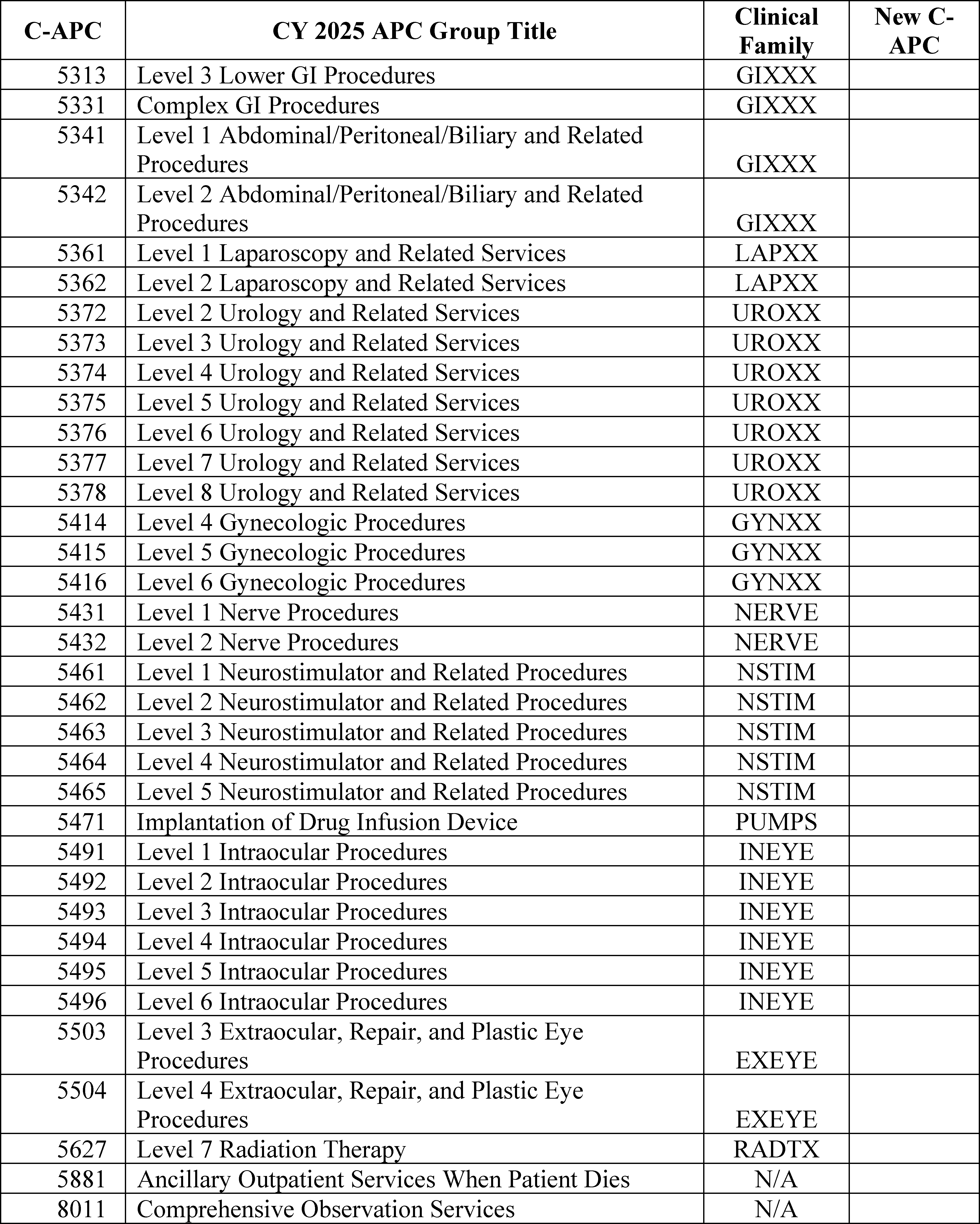 III. OPPS Ambulatory Payment Classification (APC) Group Policies
