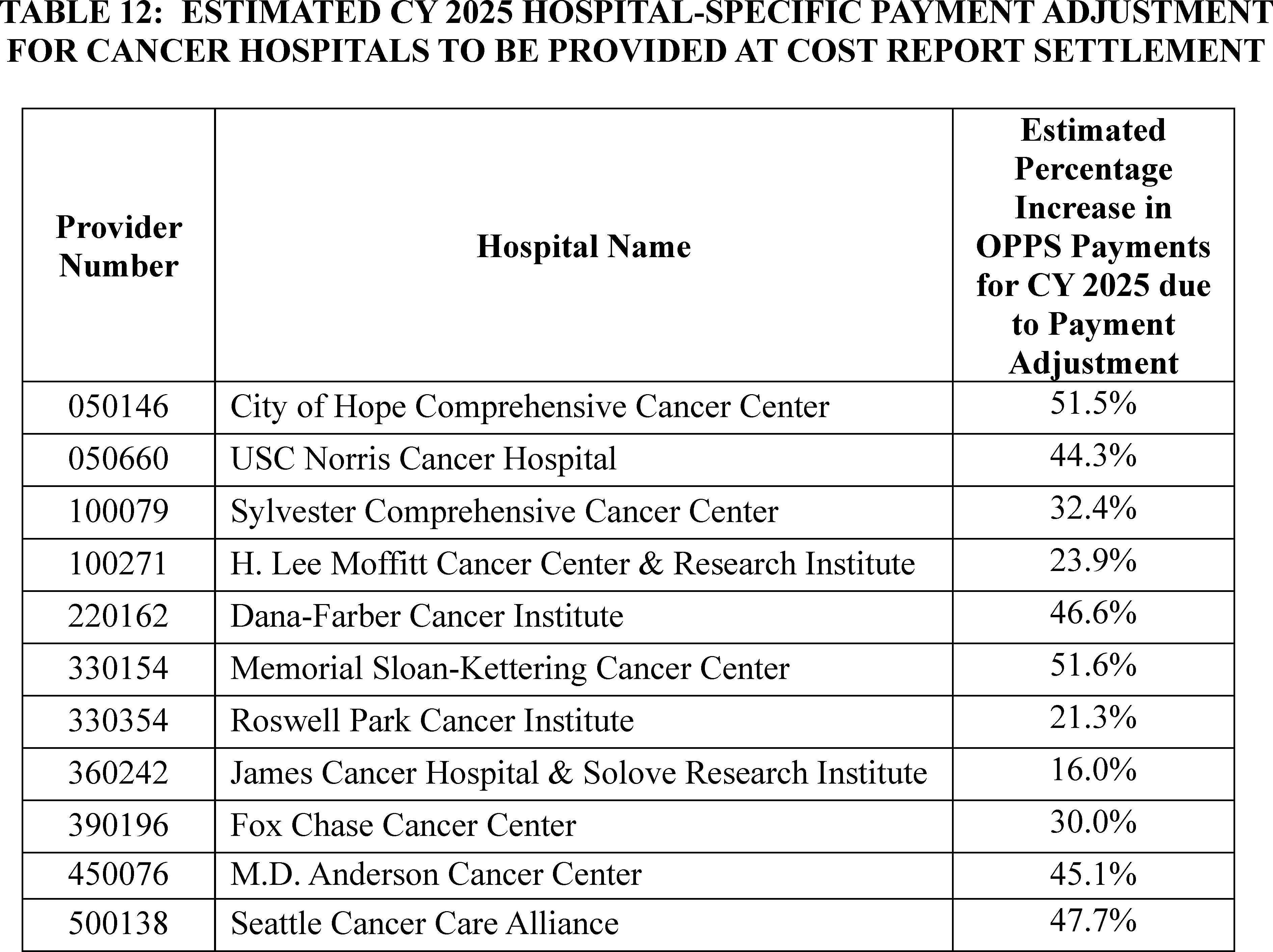 F. Payment Adjustment for Certain Cancer Hospitals for CY 2025