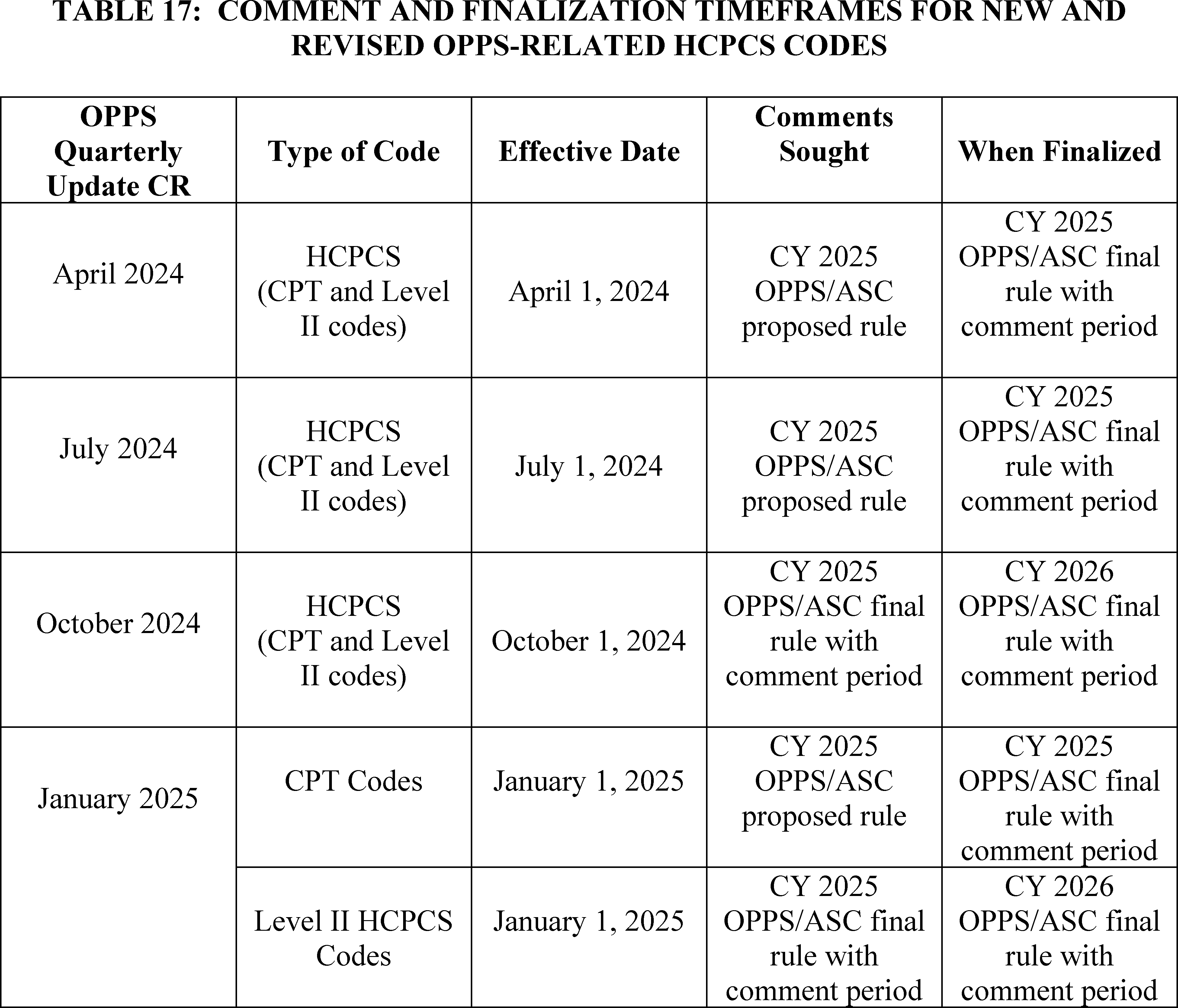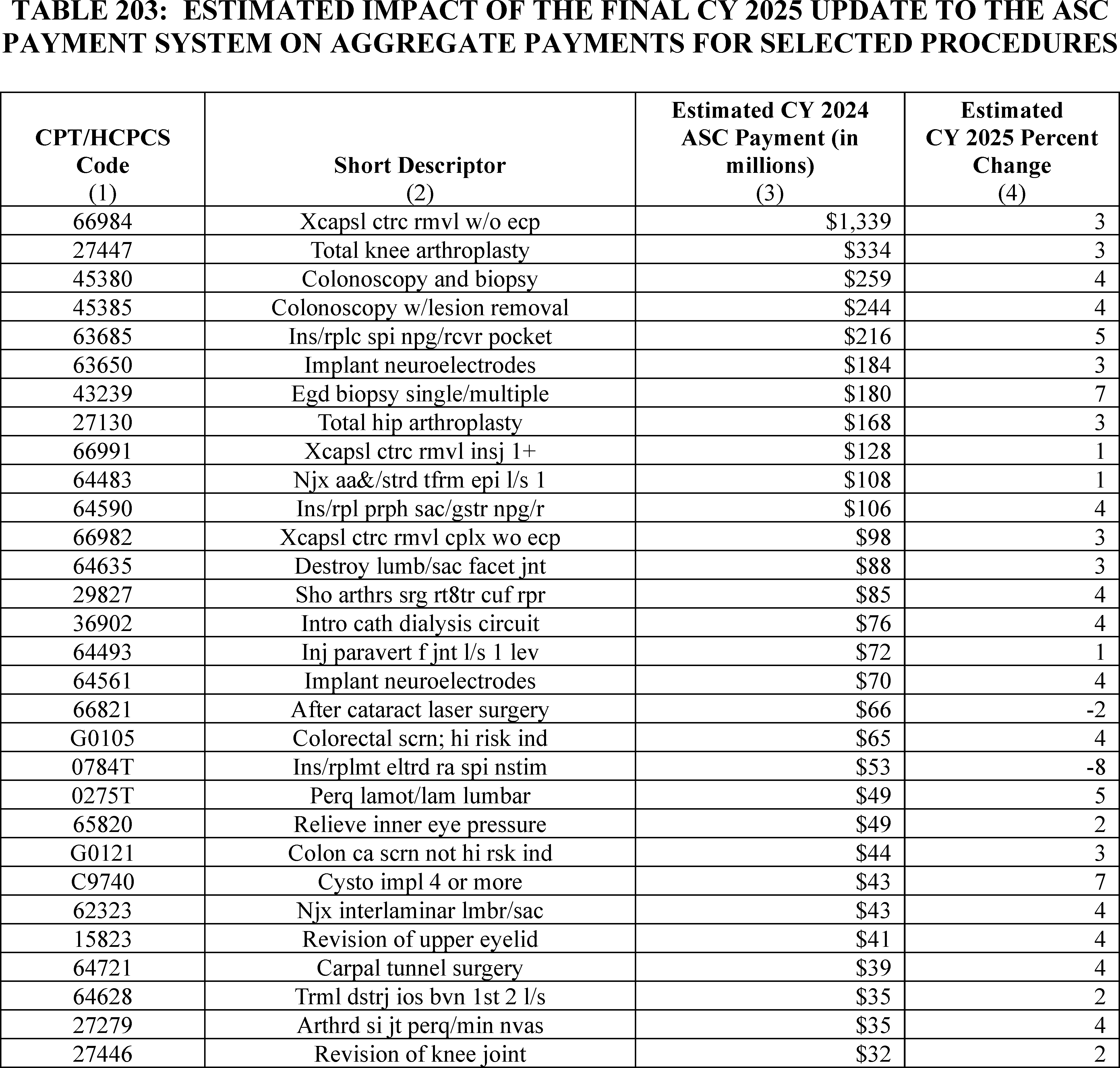 This final rule with comment period revises the Medicare Hospital Outpatient Prospective Payment System (OPPS) and the Medicare Ambulatory Surgical Center (ASC) payment system for calendar year 2025 based on our continuing experience with these systems. We describe the changes to the amounts and factors used to determine the payment rates for Medicare services paid under the OPPS and those paid under the ASC payment system. Also, this final rule updates the requirements for the Hospital Outpatient Quality Reporting Program, Rural Emergency Hospital Quality Reporting Program, Ambulatory Surgical Center Quality Reporting Program, and Hospital Inpatient Quality Reporting Program. We also summarize information received in response to a Request for Information on potential modifications to the Safety of Care measure group in the Overall Hospital Quality Star Rating methodology. In this final rule, we are also finalizing our proposal to narrow the description of “custody” in the Medicare payment exclusion rule and to revise the special enrollment period criteria for formerly incarcerated individuals. We are also finalizing our Medicaid and Children's Health Insurance Program (CHIP) continuous eligibility provisions. We are also finalizing the proposal to reduce the review timeframe for standard prior authorization requests for certain covered outpatient department services paid under the OPPS from 10-business days to 7-calendar days. Further, this rule finalizes updates to the Conditions of Participation (CoPs) for hospitals and critical access hospitals (CAHs) in an effort to advance the health and safety of pregnant, birthing, and postpartum women. This rule also finalizes our proposed policy to separately pay Indian Health Service (IHS) and Tribal hospitals for high-cost drugs furnished in hospital outpatient departments through an add-on payment in addition to the all-inclusive rate (AIR) under the authorities used to calculate the AIR starting January 1, 2025. Finally, we are finalizing exceptions to the Medicaid clinic services four walls requirement for IHS and Tribal clinics, and, at state option, for behavioral health clinics and clinics located in rural areas.