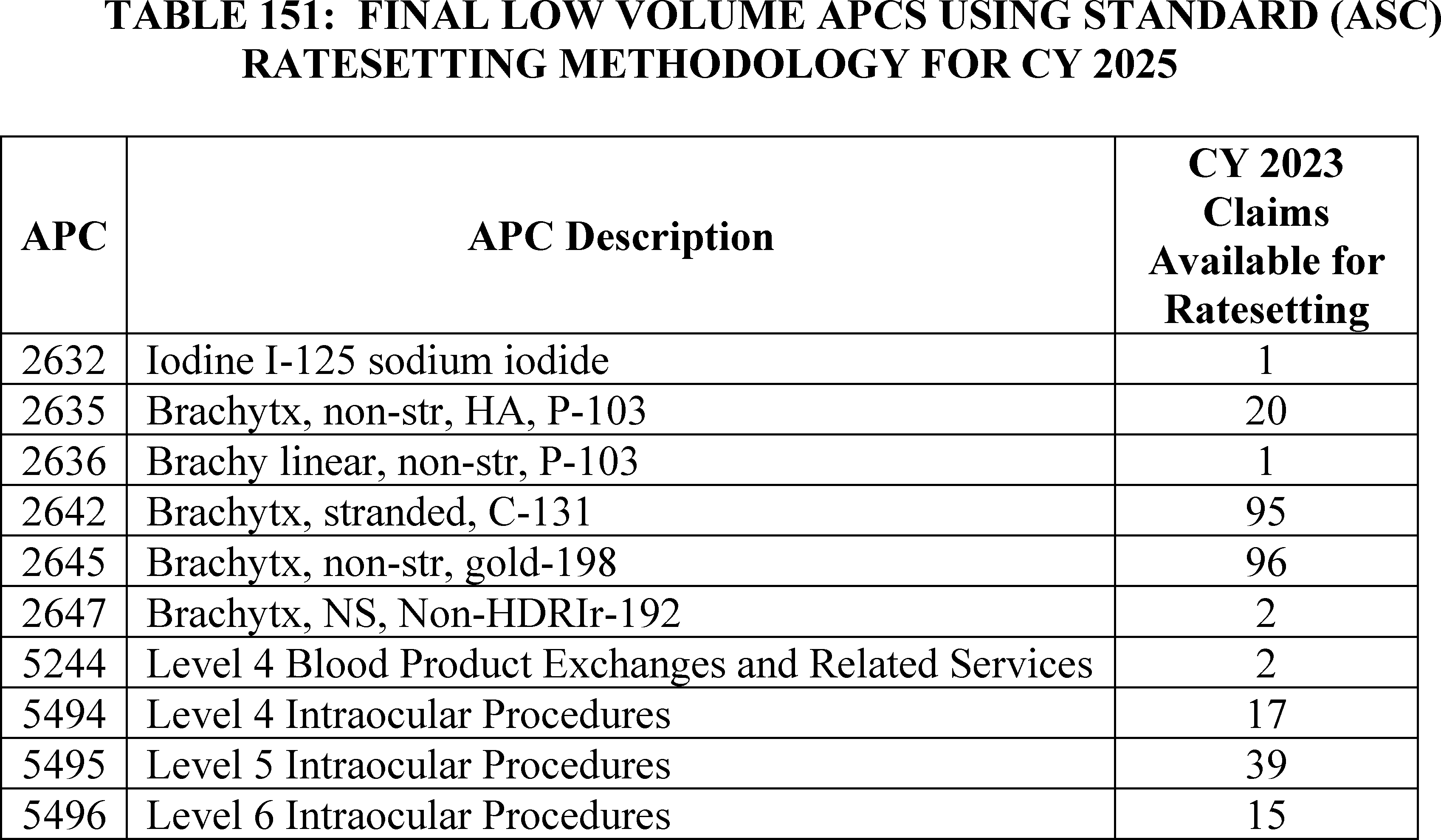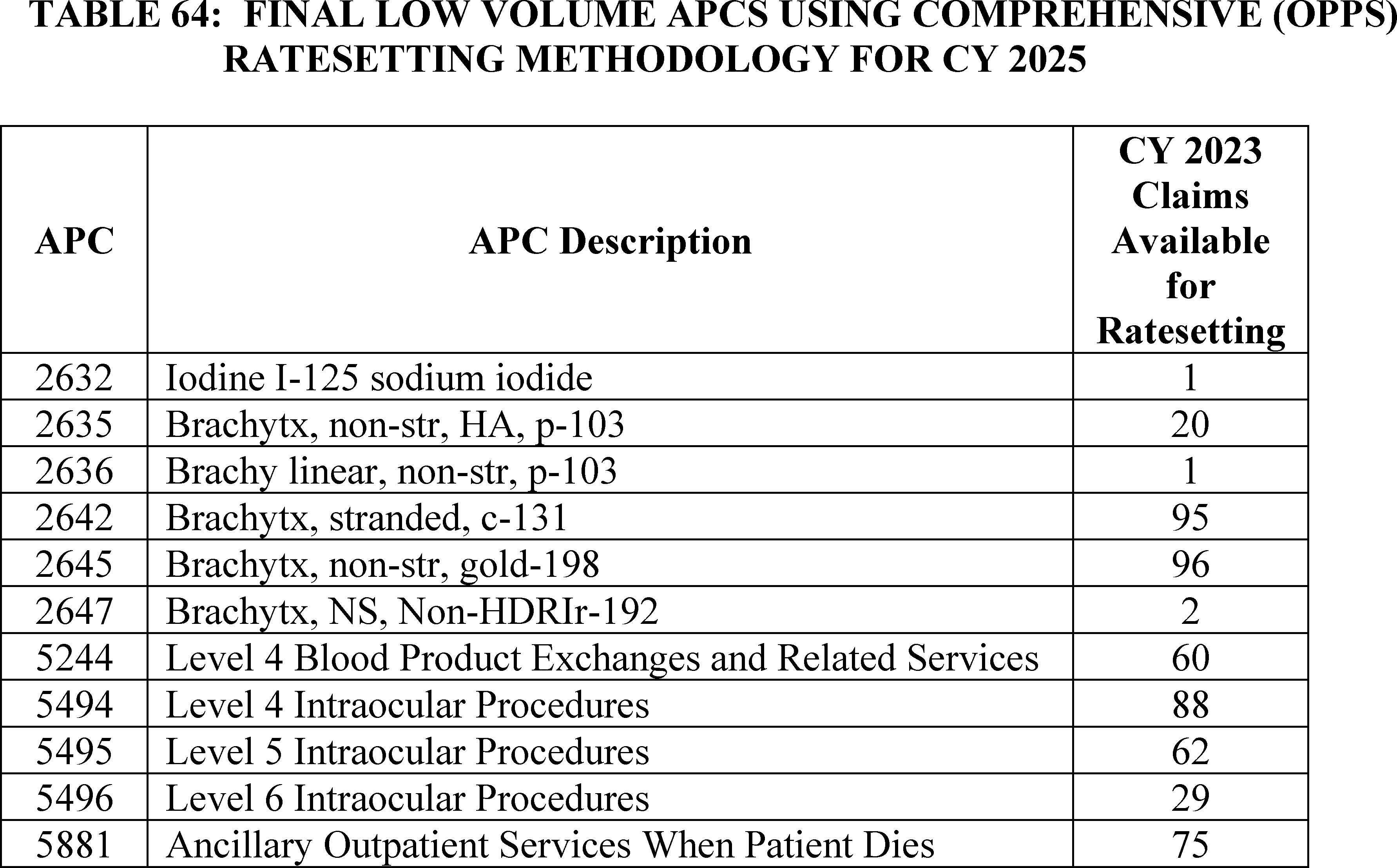 D. Universal Low Volume APC Policy for Clinical and Brachytherapy APCs