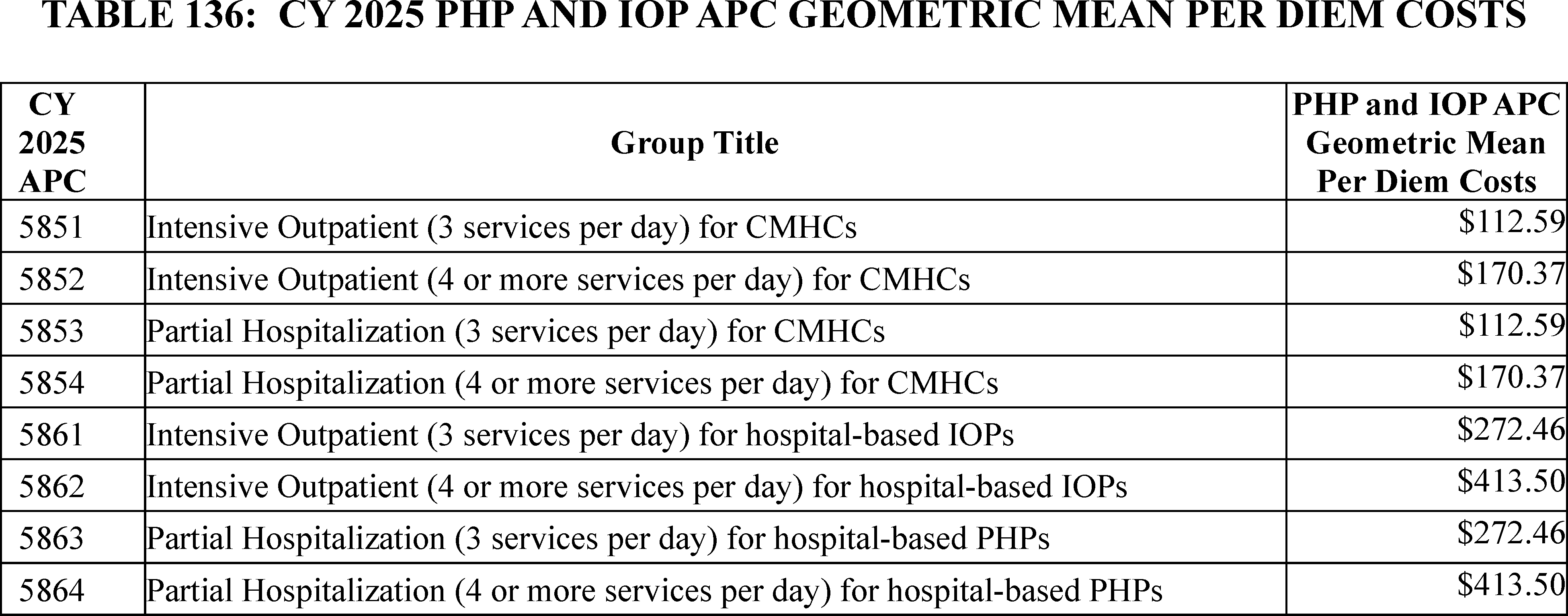 Partial Hospitalization Program (PHP), Intensive Outpatient (IOP), and Community Mental Health Center (CMHC) Issues, contact the PHP Payment Policy Mailbox at PHPPaymentPolicy@cms.hhs.gov.