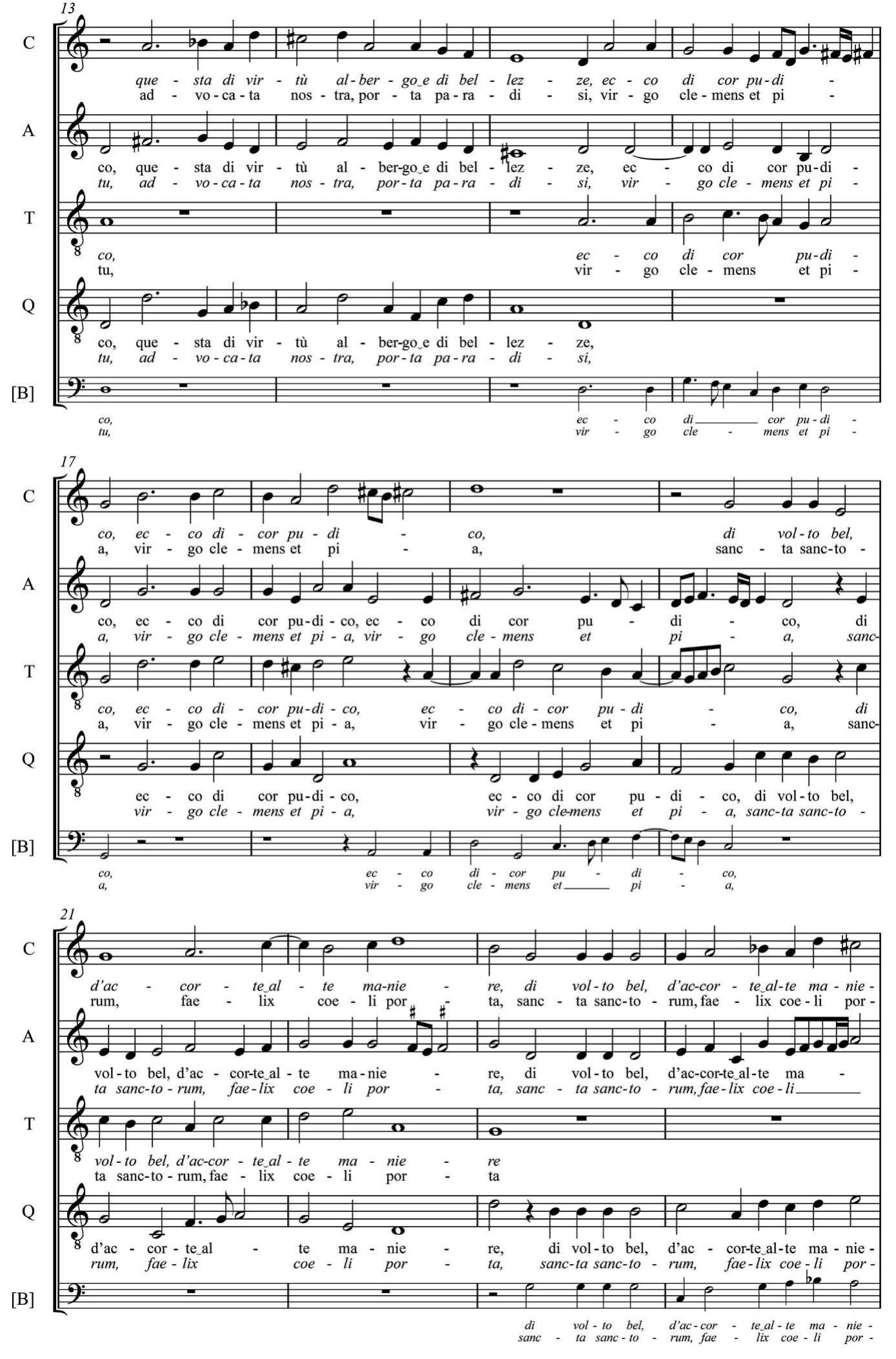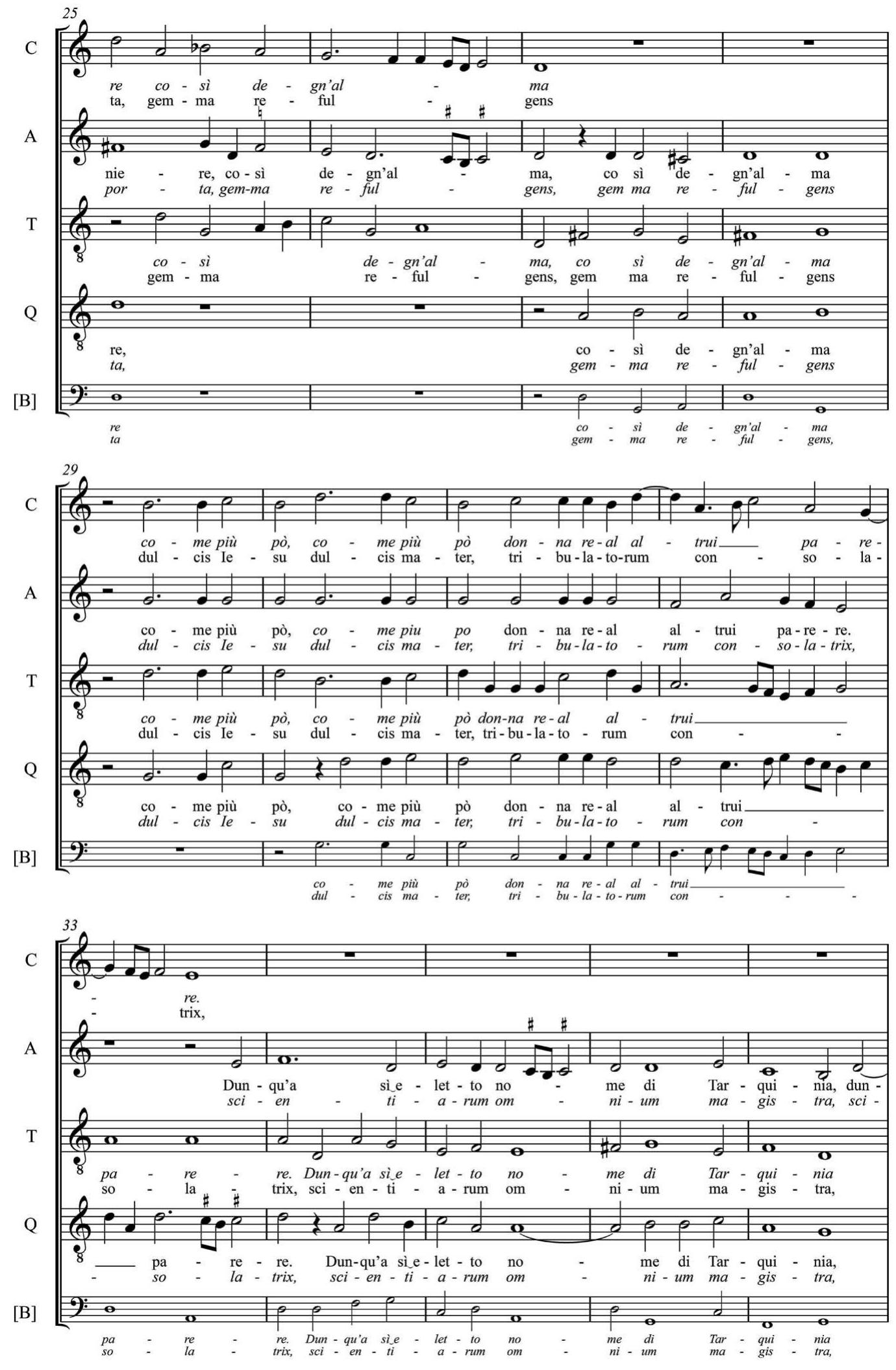 This case study also provides an opportunity to examine the criticisms made of Bona by Michael Praetorius in the third volume of his Syntagma Musicum (1619). Despite its incomplete form, this Mass—and many other incomplete works still awaiting study—offers valuable insights into the networks of influence, intellectual exchange, and compositional practices that shaped early seventeenth-century music.