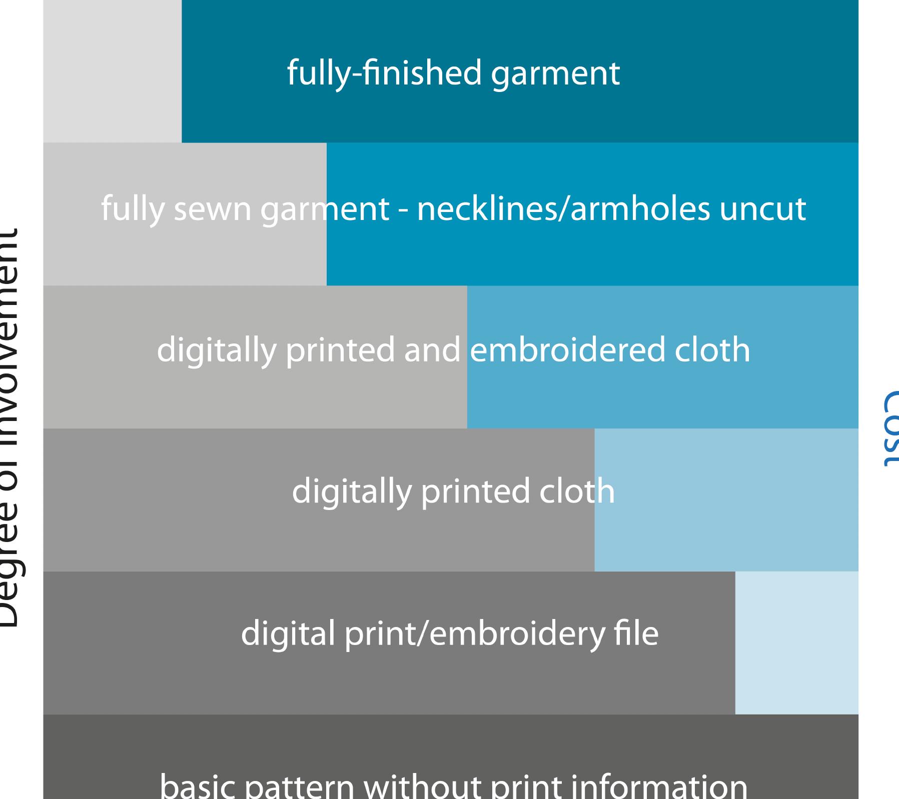 collisions, experiments and design intersections, we asked the following three questions. What costs/benefits can we identify to aid the development of a sustainable fashion industry through risk taking at the intersection of our design practices? What new knowledge arises in risky collaborative design practice? And how can this new knowledge be best communicated to foster an environment of risk-taking within the traditionally risk adverse fashion industry? This paper primarily discusses our responses to the first two questions and