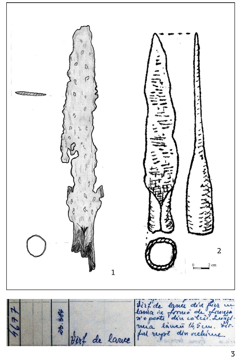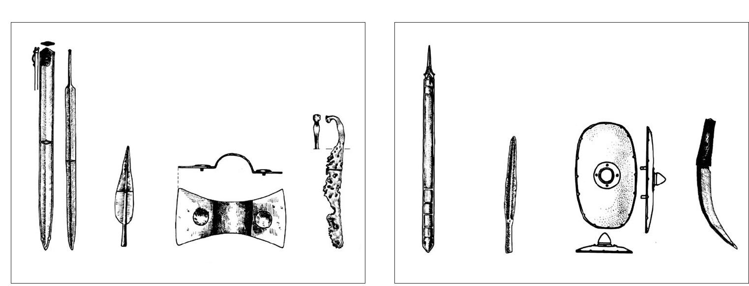 top layers, confirmed the presence of a carefully built stone mound. The metal objects found in both structures, such as a Roman bronze sieve, curved knife, shield umbo, Laminci belt-buckle and lance head, are similar to other Late La Tène funerary discoveries from pre-Roman Dacia, but, at