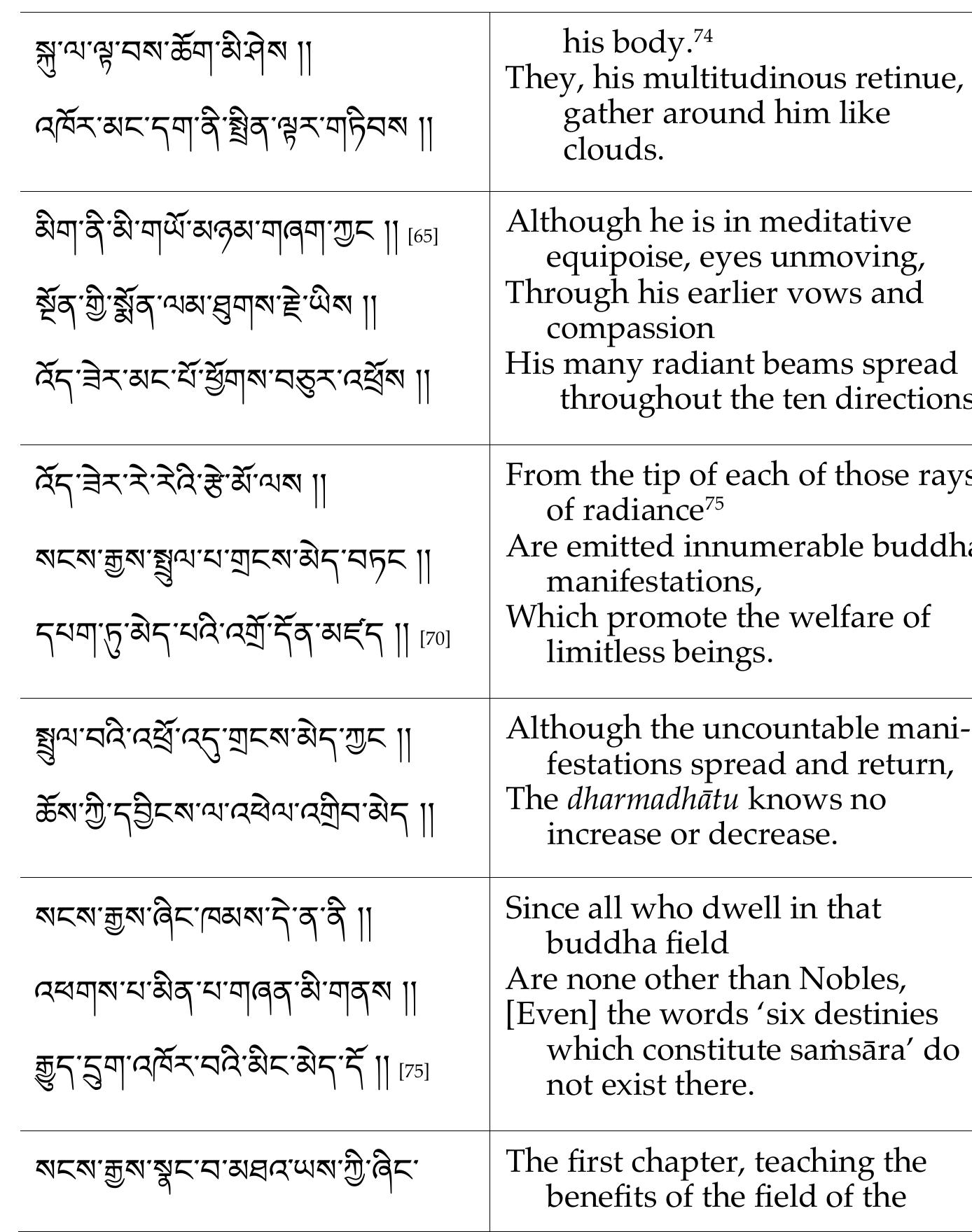 This is an open access chapter distributed under the terms of the cc by-nc 4.0 license. chapter 4... more This is an open access chapter distributed under the terms of the cc by-nc 4.0 license. chapter 4 The Gaṅgottarāparipr̥ cchā A Small Mahāyāna Buddhist Scripture Jonathan A. Silk 1 silk 水, chu, 9c 永盡, gtan zad, 16a 汝, khyod, 2a, 3b 沮壞, gzhïg, 12b 法, chos, 3a 法師, chos 'chad pa'ï gang zag dag, 11a 流轉, 'khor ba'i rgyun, 11a 涅槃, mya ngan las 'das pa, 4a 涅槃界, mya ngan las 'da's pa'ï dbyings, 5a 深, zab mo, 10c 滅, yongs su mya ngan las 'da's pa, 11a 漏, zag pa, 16a 無 … 可得, myï dmyigs pa, 9c 無得, thob pa yang myed, 8f 無心, sems myed pa, 8b 無心, sems ma mchïs pa, 8c 無所得, dmyïgs su myed pa, 10a 無攀縁, dmyïgs pa yod pa ma yïn, 7c 無有, myed, 2d 無有 … 可得, myi dmyigs pa, 9b 無漏, zag pa ma mchïs pa, 9a 無生者, skye ba ma mchïs pa, 5b 無生者, skye ba myed pa, 5c 無證, mngon bar rtogs pa yang myed, 8f 無量, tshad myed pa snyed, 13b, 16d 無餘涅槃, lhag ma byed pa'i mya ngan las 'da's pa, 14d 然, mod kyi, 7c 爲 … 故, ched du, 8a 爾, de bzhin, 4a 爾時, de nas, 14a 猶, yang, 7d 猶如, mtshungs, 8g 甚深, zab mo, 11a 甚爲希有, shin du ngo mtshar che, 16c 生, skye bar 'gyur ba, 10c 生, skye ba, 10c 生, skyed pa, 11a 生死, 'khor ba, 9a 生滅, skyed ba dang | 'gag pa, 2d 由 … 故, dbang gis, 11a 界, khams, 9a 界, dbyings, 12b 畢竟, nam yang, 4d 異, tha dad pa, 4b 病, na ba, 10c 發斯問, 'drï ba 'di dris pa, 7c 白言, gsol pa, 4b 皆, thams cad, 3a 相, mtshan nyïd, 9b 眞, yang dag par, 10a 瞋, zhe sdang, 11a 種, bskyed pa, 16d 種種, rnam pa sna tshogs, 13b 積集, stsogs par bgyïd, 8a 積集之時, bstsags pa nyïd kyï tshe, 8b 積集時, bstsags pa ma yïn ba'ï tshe, 8b 穿鑿, dbug, 12b 答, lan 'debs pa, 2c, 5b 紅, leb rgan, 13b 經, chos kyï rnam grangs, 15a 罣礙, thogs pa, 8g 義, don, 8c 老, rga ba, 10c 而, kyang, 9b 聞, thos, 10c 肩, phrag pa, 14a 膝, phus mo … lha nga, 14a 致斯問, bka's rmas pa 'dï rmas lags, 7b 舍衛國, mnyan yod, 1a 色, gzugs, 9a 若, gal te, 2c 苦, sdug bsngal ba, 10c 菩提, byang cub, 8a 菩薩, byang cub sems dpa' , 8b 著, btsugs, 14a 處, skye mched, 9a 虛空, nam mkha' , 8g 衆會, 'khor 'dus pa, 14c 行, 'du byed, 9a 袒, bla go, 14a 見, mthong, 4b 見, yang dag par rjes su mthong, 10a 親近, bsnyen bkur, 16d 觀, mthong, 4d 解脱, rnam par grol ba, 10c 解脱, rnam par grol ba thob par gyur, 16a 言, gsol pa, 8a 言説, tshïg gis brjod pa, 9b 説, bshad pa, 2d