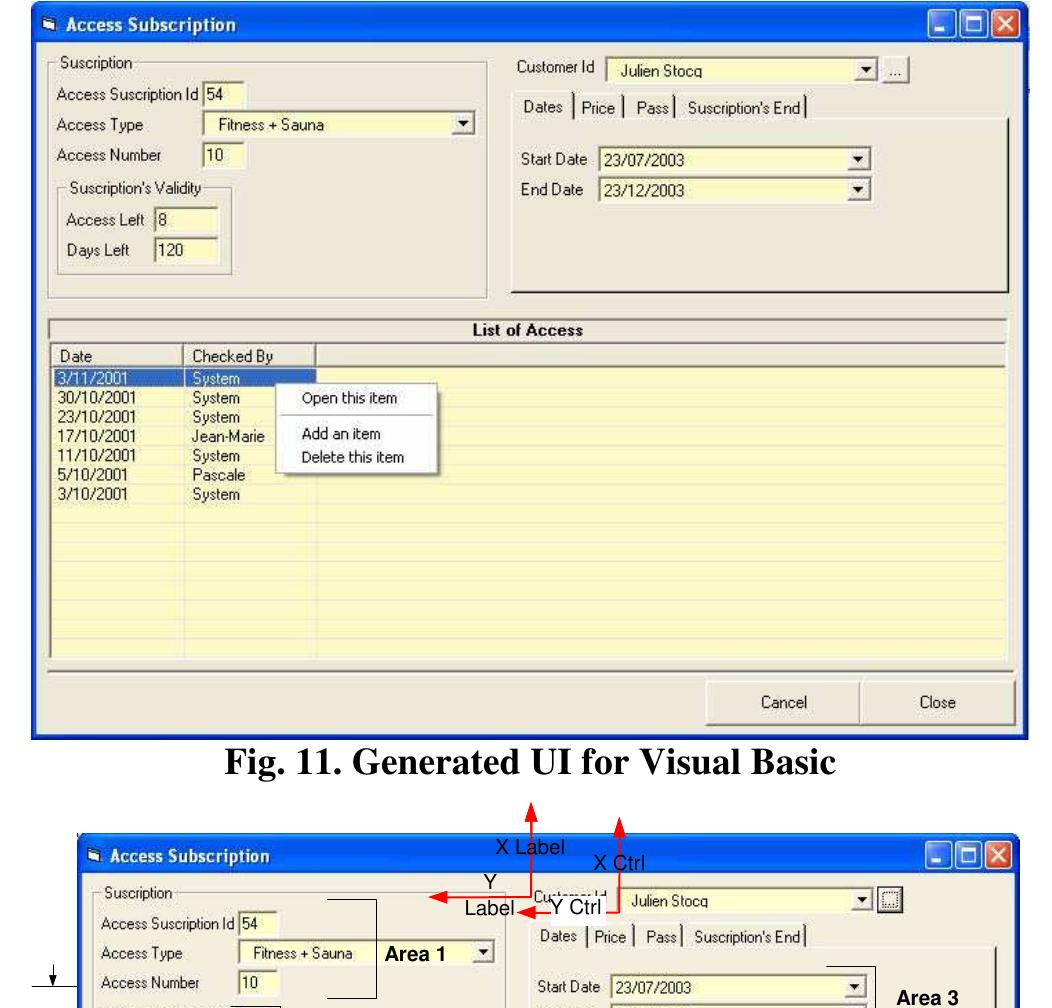 User interfaces to information systems can be considered systematic as they consist of two types ... more User interfaces to information systems can be considered systematic as they consist of two types of tasks performed on classes of a domain model: basic tasks performed on one class at a time (such as insert, delete, modify, sort, list, print) and complex tasks performed on parts or whole of one or several classes (e.g., tasks involving various attributes of different classes with constraints between and establishing relationships between). This paper presents how a wizard tool can produce user interfaces to such tasks according to a model-driven approach based on a domain model of the information system. This process consists of seven steps: database selection, data source selection, building the opening procedure, data source selection for control widgets, building the closing procedure, setting the size of the widgets, and laying them out. The wizard generates code for Visual Basic and eMbedded Visual Basic, thus enabling to obtain support for both stationary and mobile tasks simultaneously, while maintaining consistency.