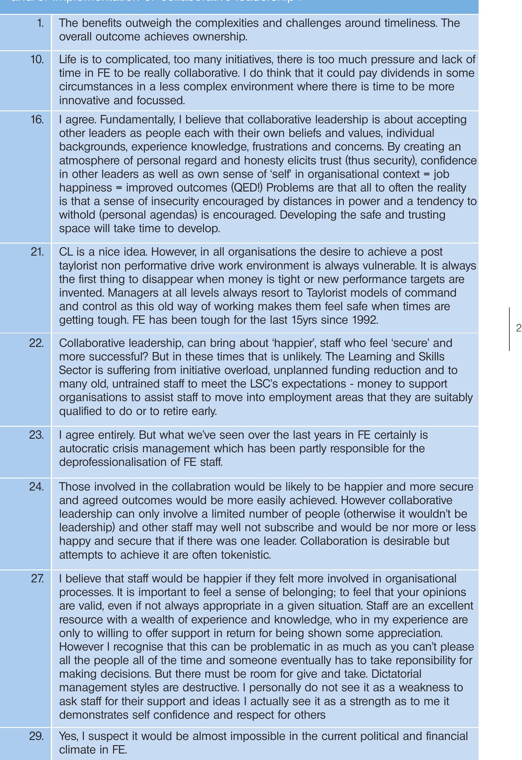 Executive Summary This research project funded by the Centre for Excellence in Leadership (CEL) i... more Executive Summary This research project funded by the Centre for Excellence in Leadership (CEL) in 2006-07 aimed to collect and analyse data on 'collaborative leadership'(CL) in the learning and skills sector (LSS). The project investigated 'collaborative leadership'and its potential for benefiting staff through trust and knowledge sharing in communities of practice (CoPs).