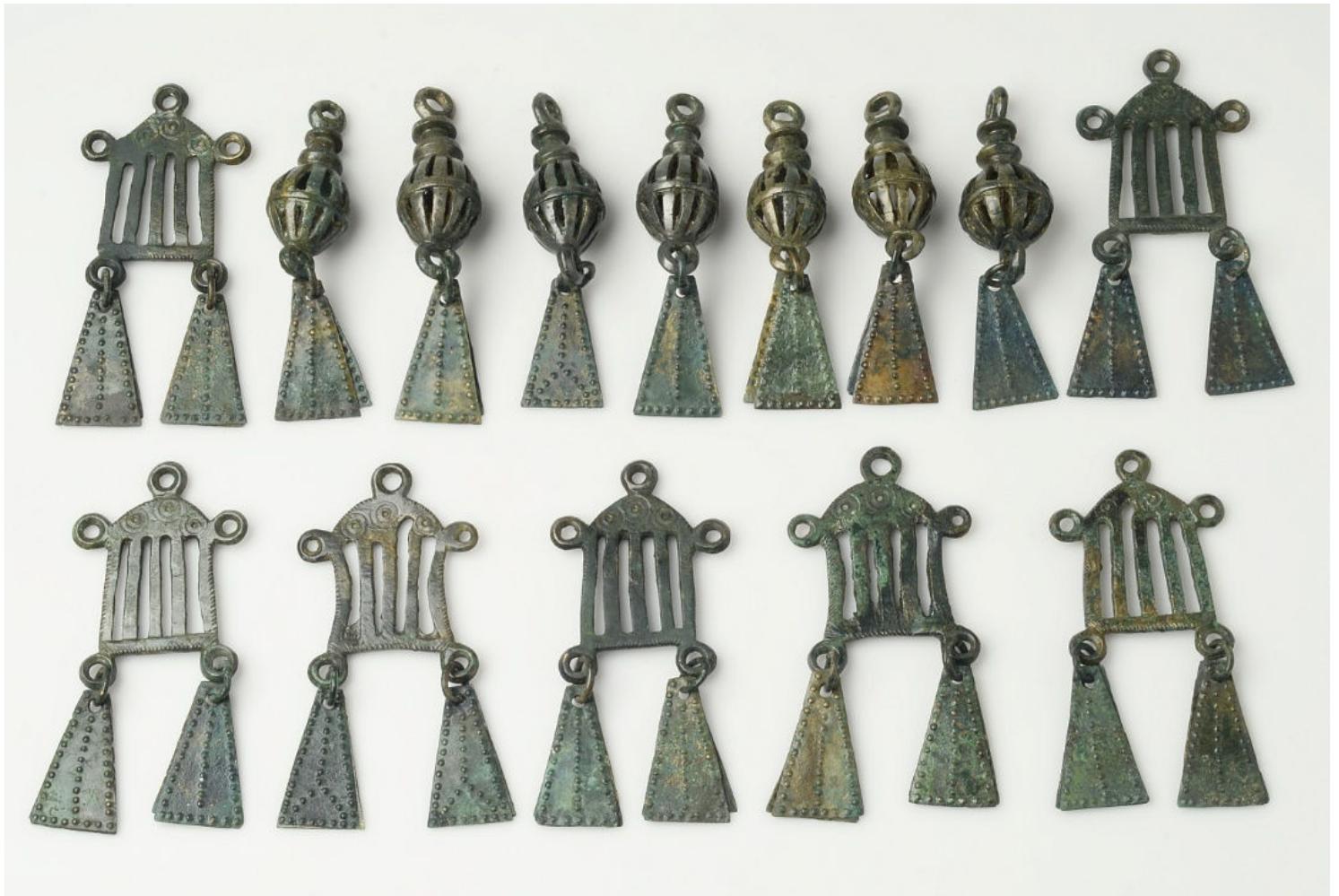 Nové Zámky I, Radvaň nad Dunajom-Žitavská Tôň (Radvaň I), Holiare and Skalica B e a t e M a r i a... more Nové Zámky I, Radvaň nad Dunajom-Žitavská Tôň (Radvaň I), Holiare and Skalica B e a t e M a r i a P o M B e r g e r -J ö r g M ü h l h a n S -K a y l e i g h S a u n d e r S o n Pellet bells and bells from the avar period cemeteries nové Zámky i, radvaň nad Dunajom-Žitavská tôň, radvaň i, holiare and the Slavic cemetery Skalica, housed in the archaeological collections of the Slovak national Museum in Martin and the archaeological institute of the Slovak academy of Sciences were investigated interdisciplinary within the research project 'Metallic idiophones between 800 Bc and 800 aD in central europe' (funding austrian Sciences Funds FWF, supporting natural history Museum vienna). the aim of the research project was to gain more information about their function, their tonal influence, their material and the textiles corroded on the surface. they sound objects served as sounding-apotropaic amulets for humans and sounding-apotropaic decoration of horse harness. the pellet bells are cast in various copper alloys and forged from metal sheet. Filled with small pebbles or cinder they show oval or ball shaped forms with various decorations on the surfaces. Frequency ranges show partial from 2 khz up to 20 khz. the sounds are rather quiet, more noise like, bright, a little bit sharp and very low in roughness. Most of the objects are heavily corroded, which influences the sounds. apart from decorative and apotropaic uses, a practical test has shown that the horse is much more concentrated and less likely to spook at outside factors when in movement carrying pellet bells.