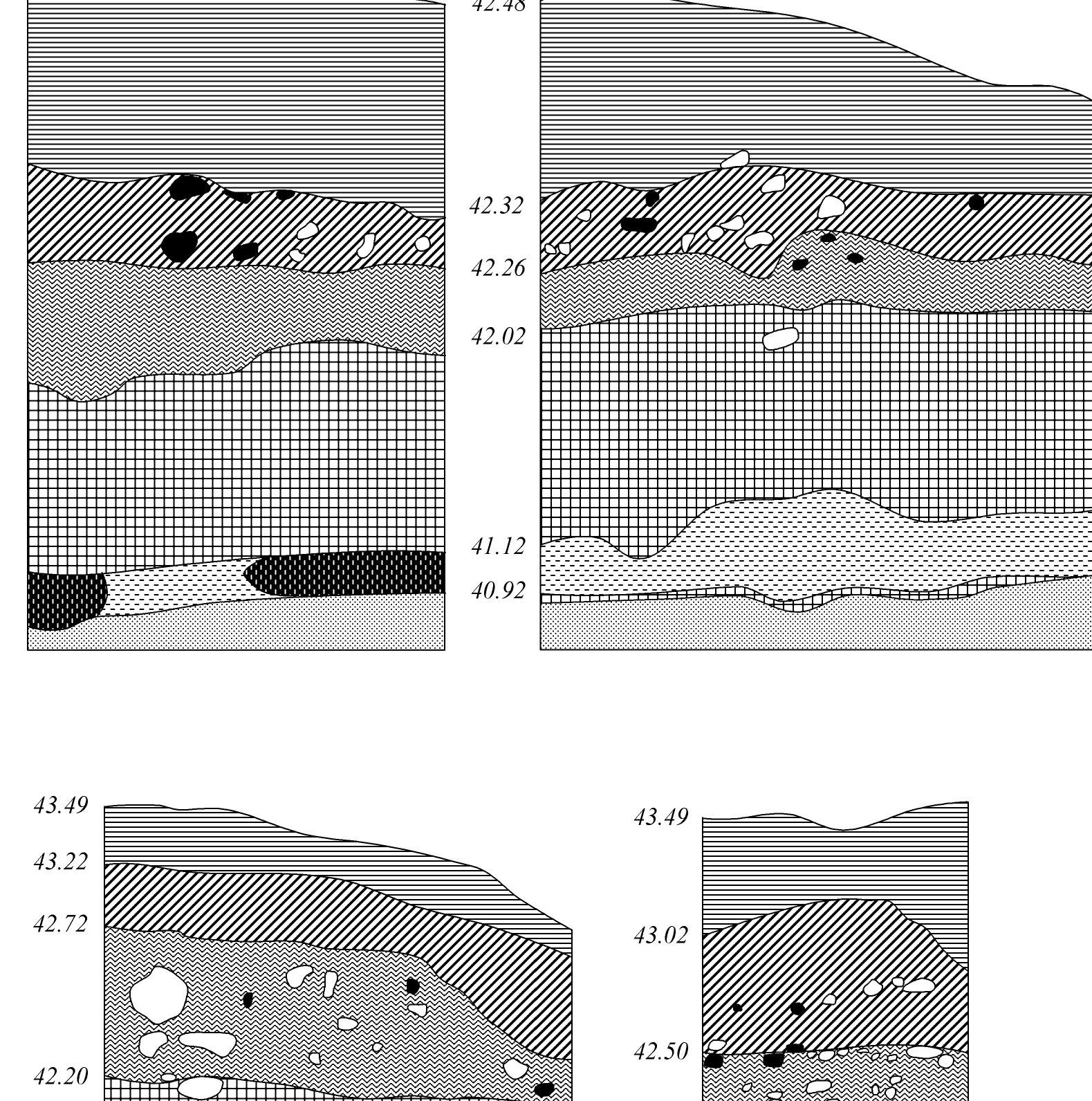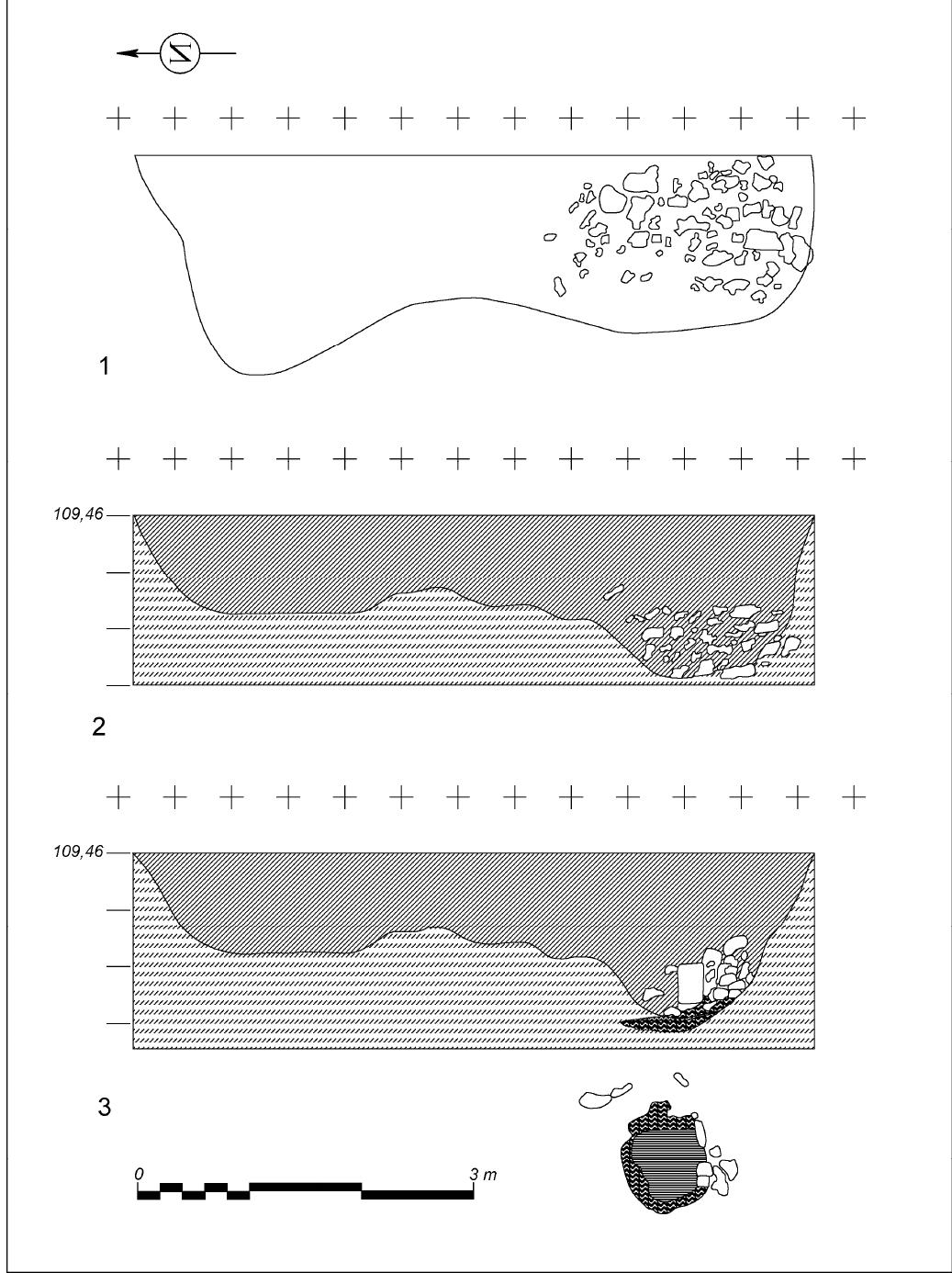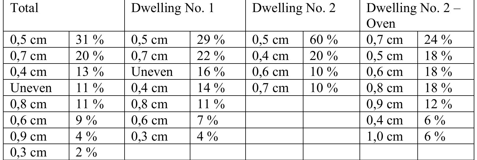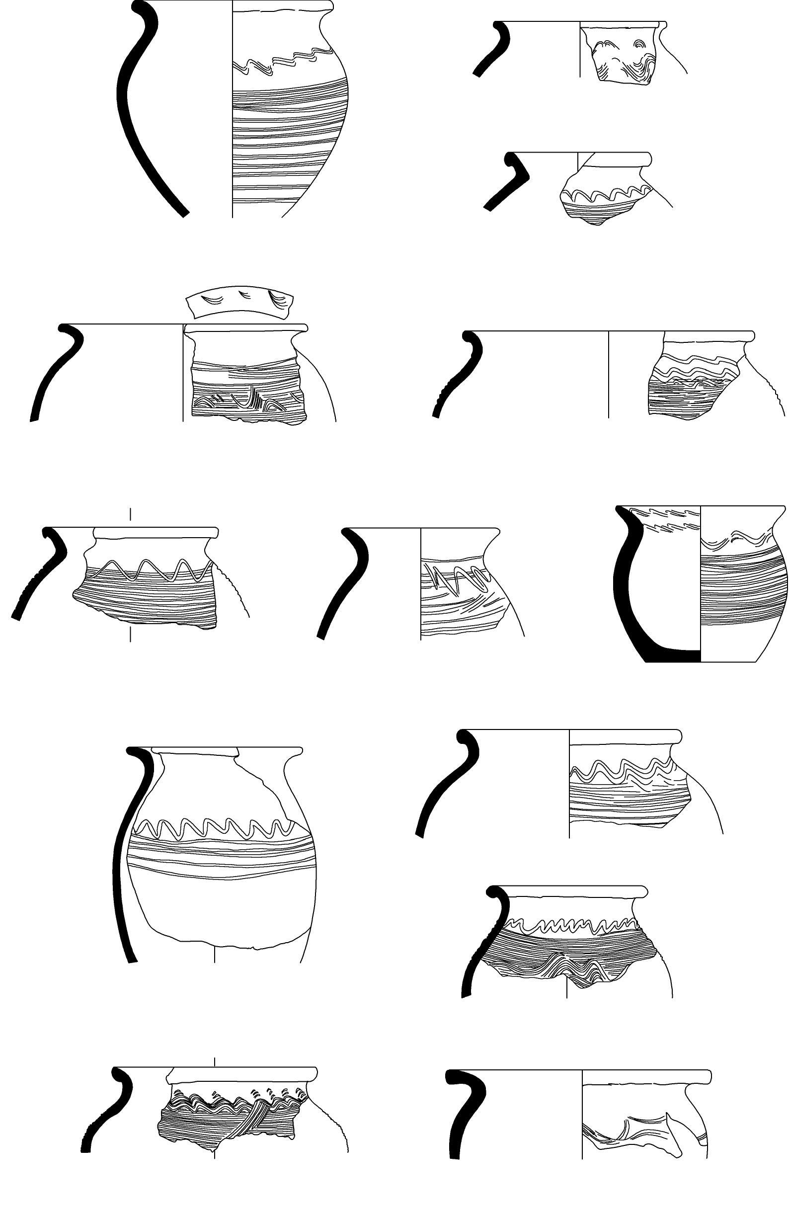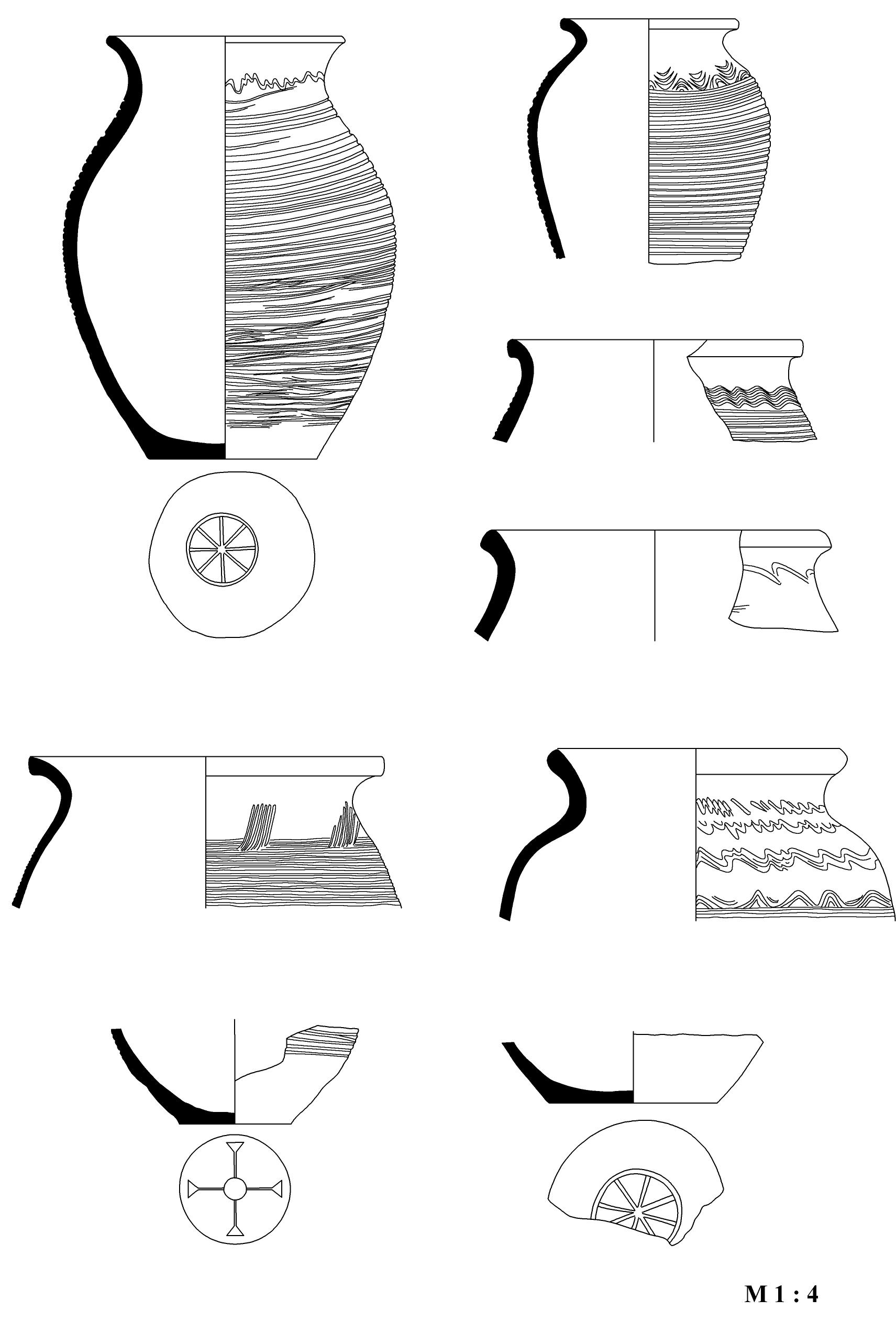 TG VIII: Coarse pottery (Fig. 11). This group is typical again for all periods but in the Early Roman level it is with greatest thickness of the walls and 33 % of the shards were probably made by using pottery wheel.