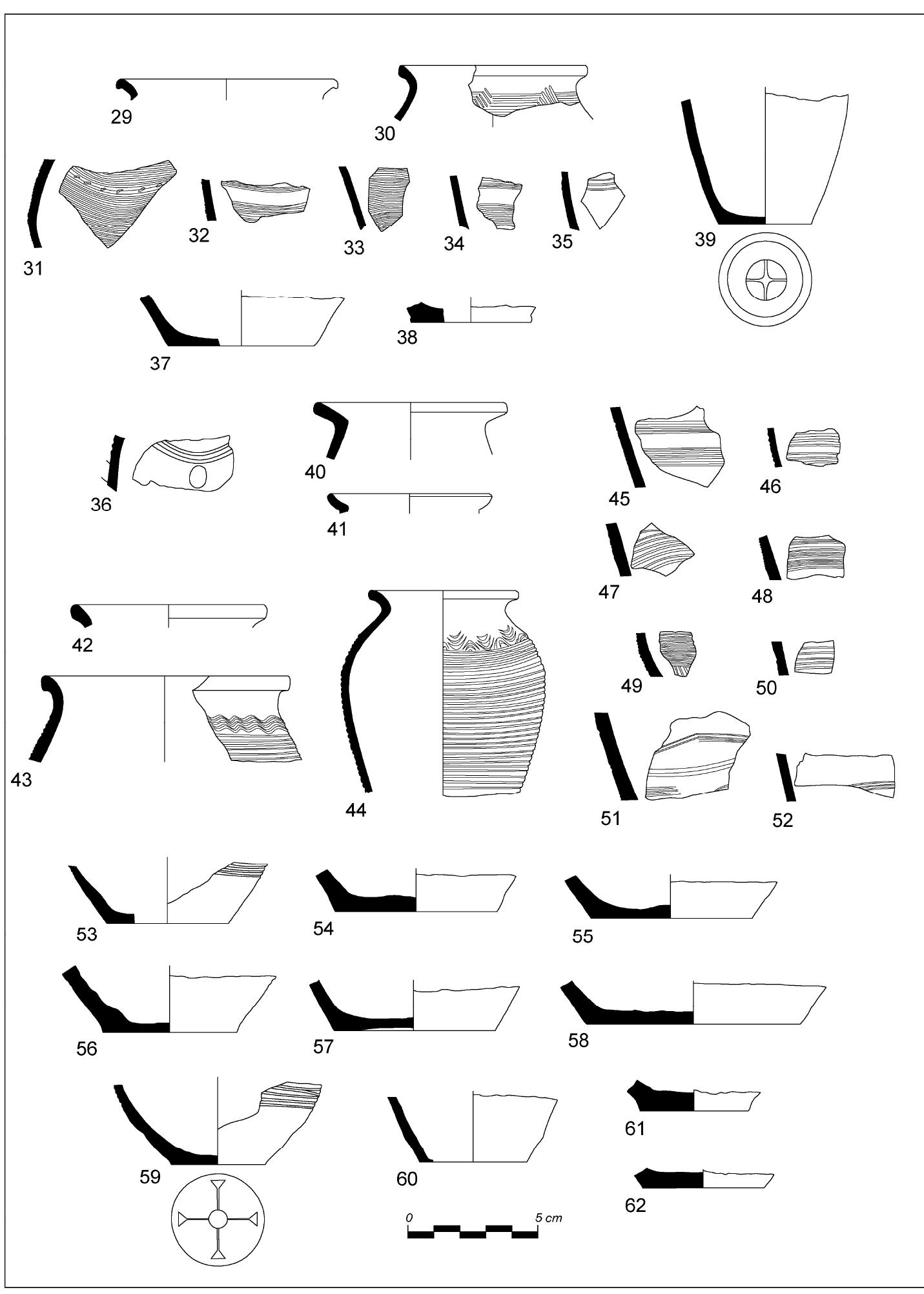 TG V: Pottery made by sandy clay with two subgroups. This kind of pottery is registered only in the Late Roman levels.