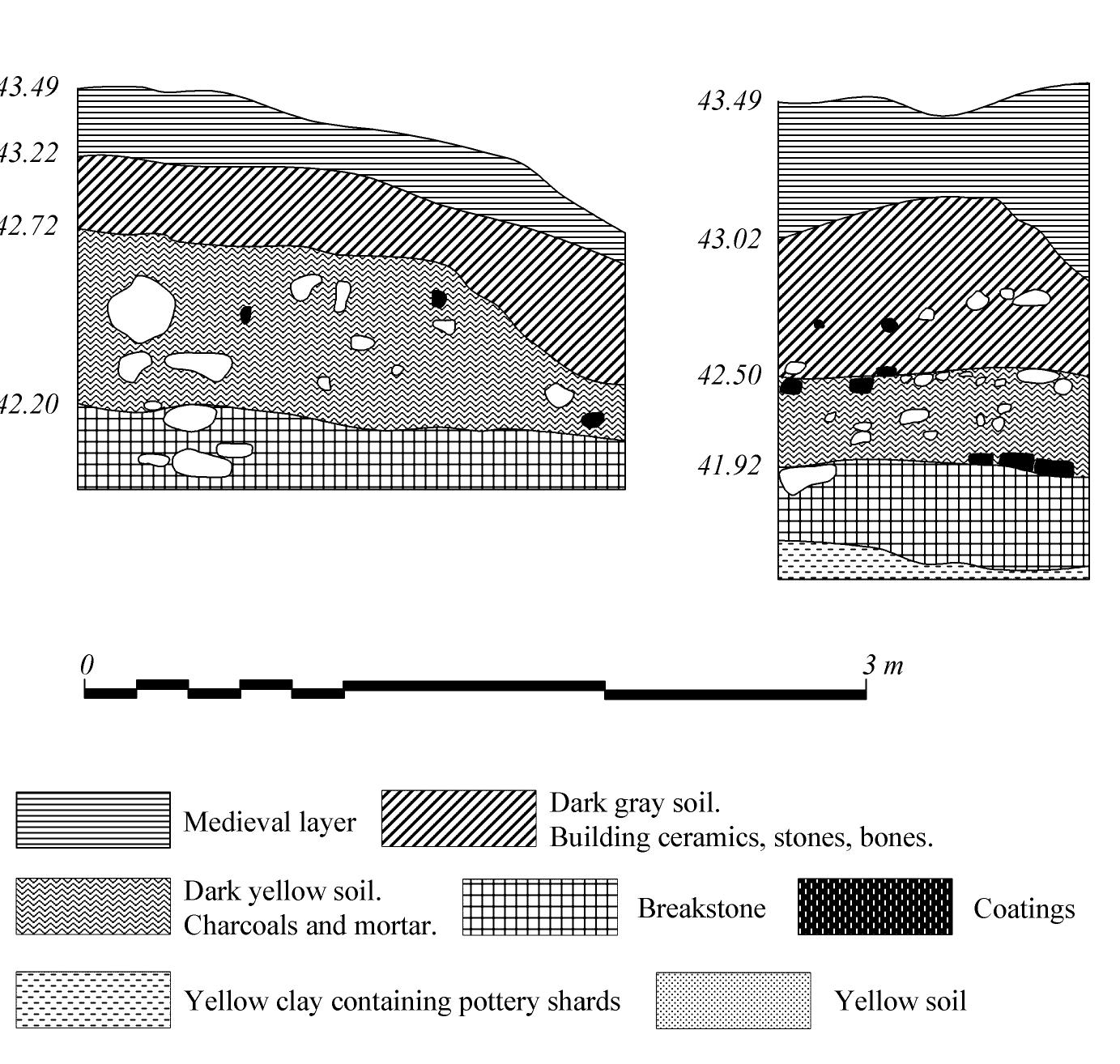 TG VII: Glazed pottery. The group is registered in level 1 and 3 in small quantity (only two shards).