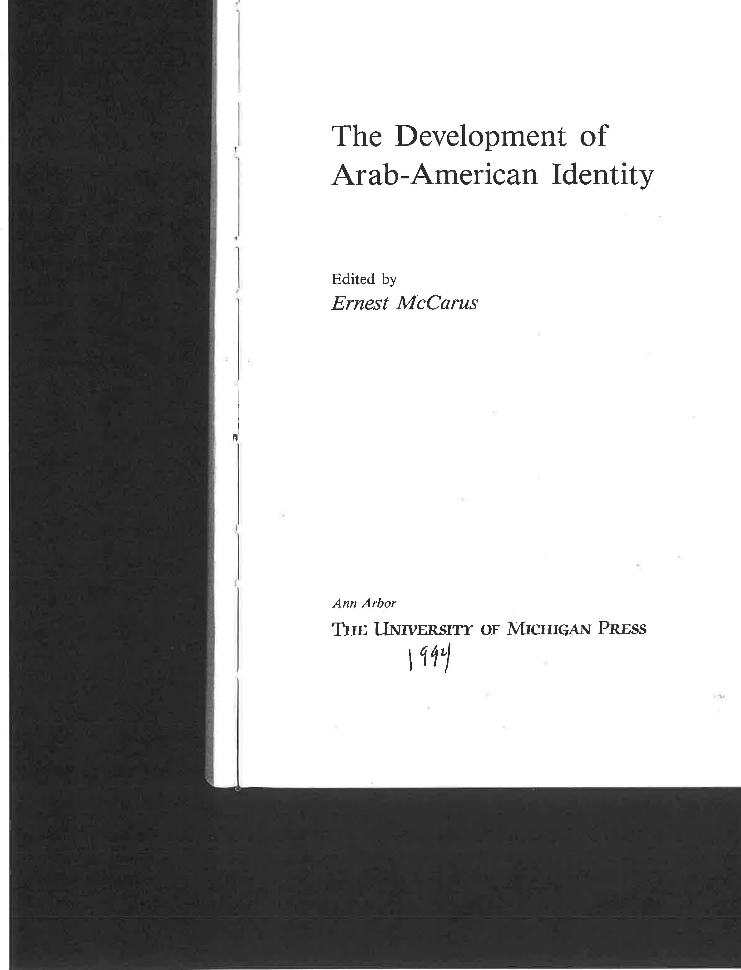 The Development of Arab American Identity, Ernest McCarus, ed., 1994
