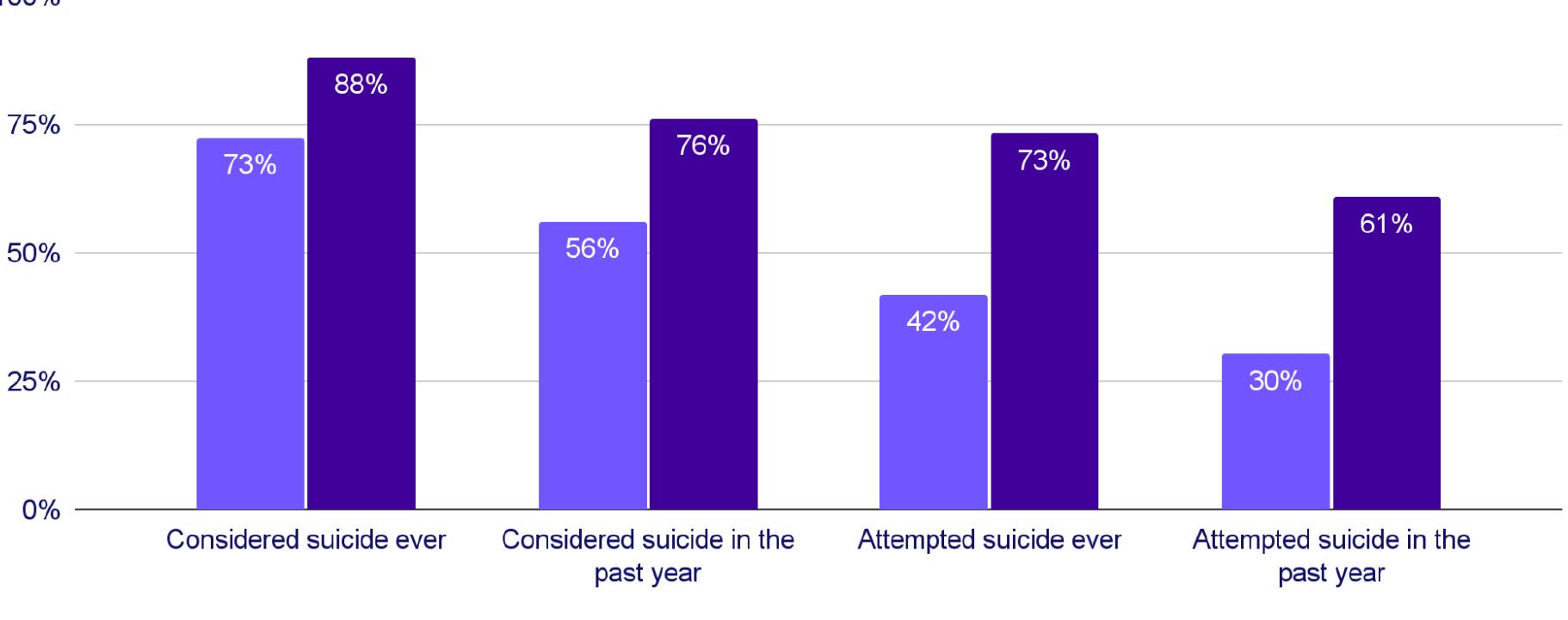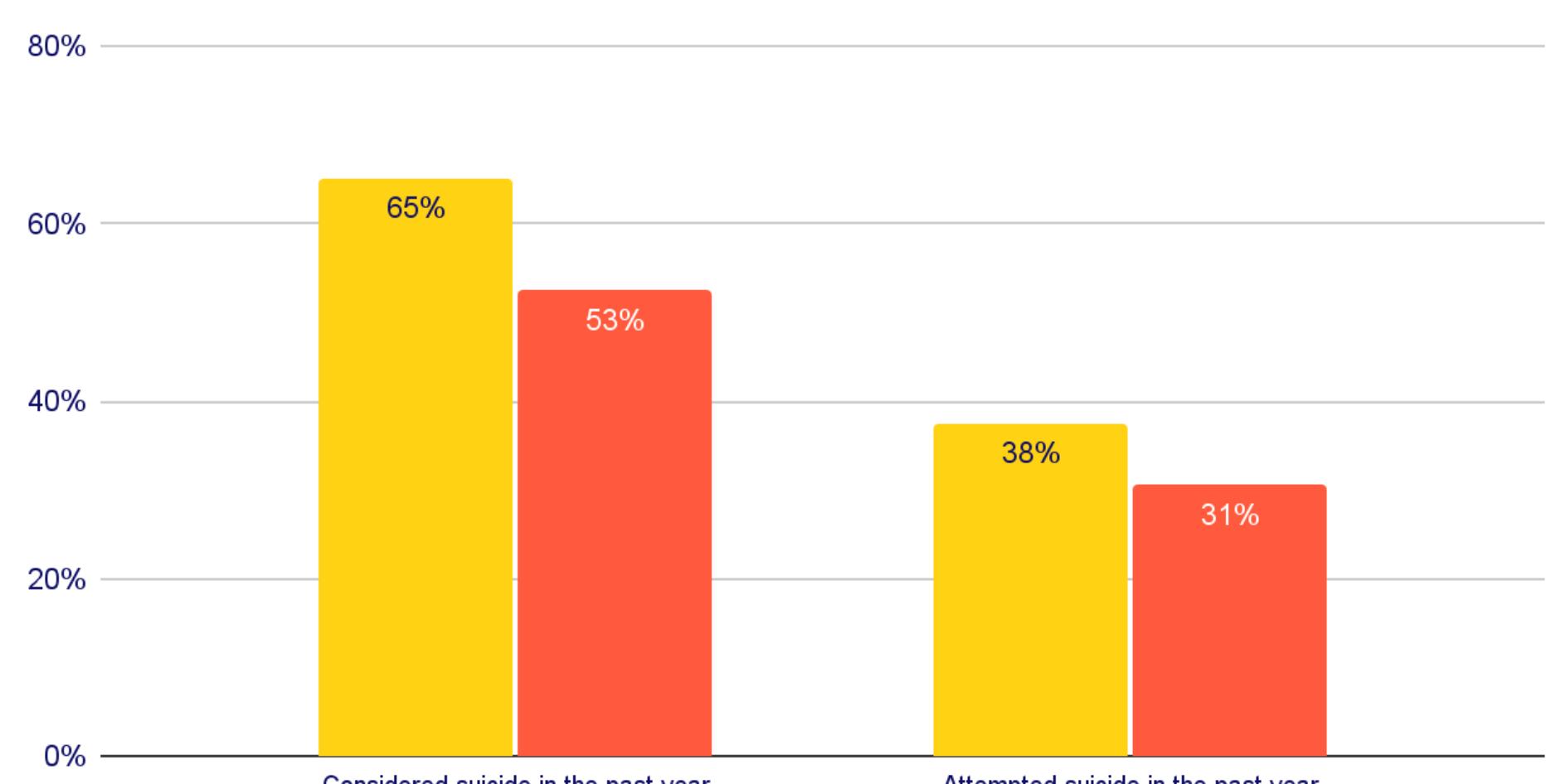 This project was led by The Trevor Project and the Psychological Association of the Philippines PAP LGBT Psychology Special Interest Group, the first formally recognized collective of psychologists and allied mental health professionals in Southeast Asia. The survey underscores the unique experiences and stressors that LGBTQ+ young people face. While these findings illustrate a number of mental health challenges among this group, they also offer valuable insight into the protective factors that may lead to better mental health outcomes for LGBTQ+ people.