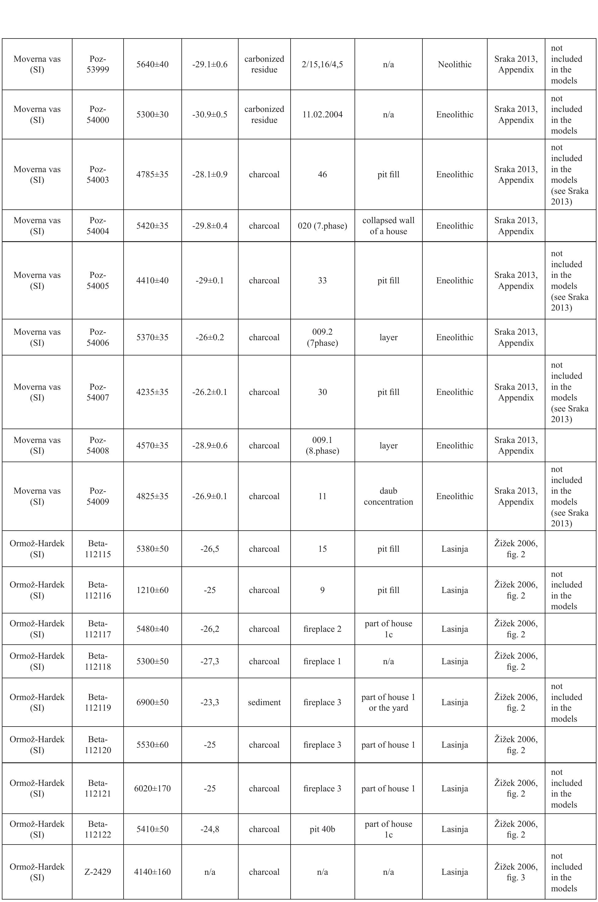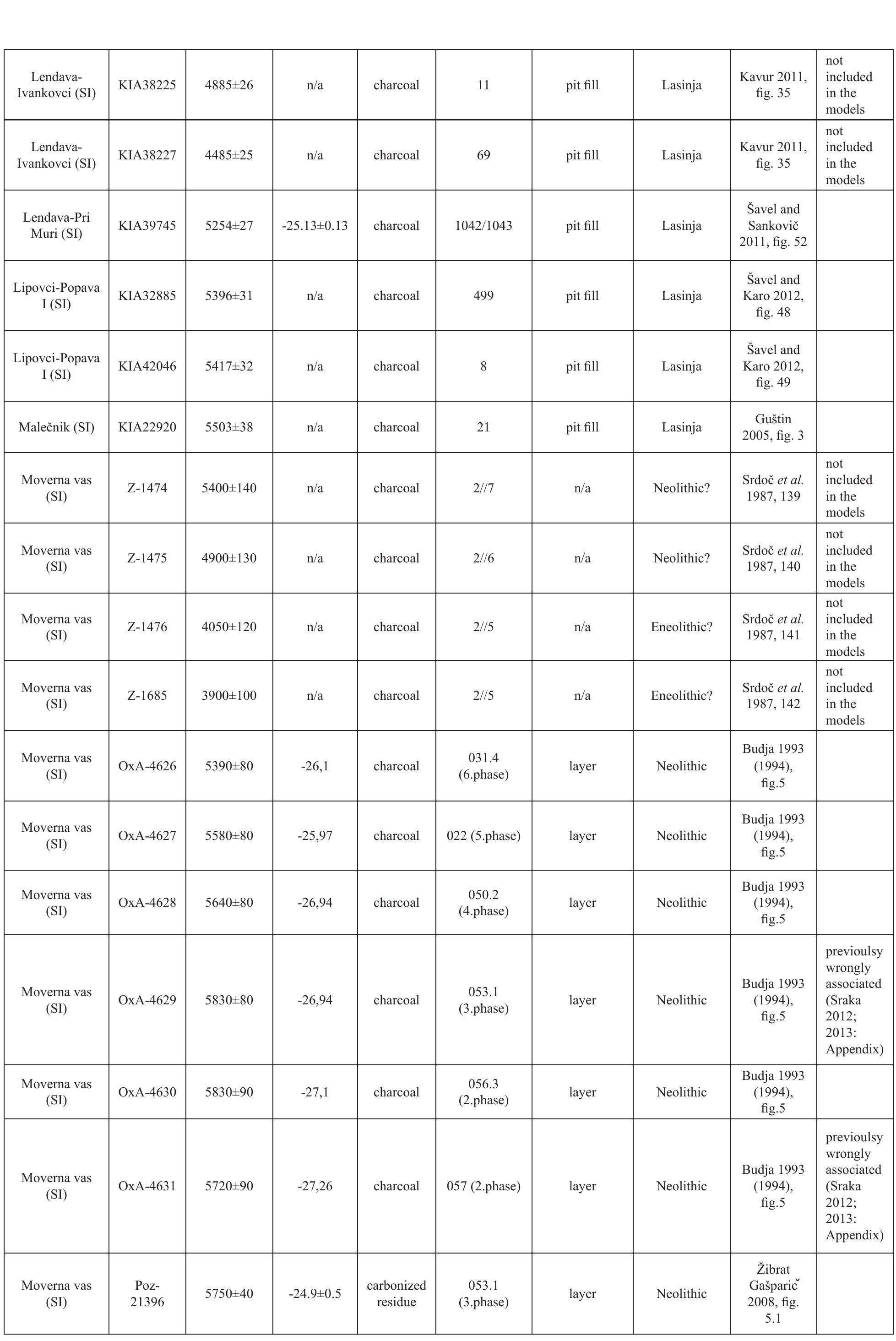 Recently obtained AMS 14C dates and the stratigraphic matrix from the Moverna vas site show incon... more Recently obtained AMS 14C dates and the stratigraphic matrix from the Moverna vas site show inconsistencies in the upper part of the stratigraphic sequence. The Bayesian approach to chronological modeling in the OxCal program is used in the paper to present the calendar chronology of Neolithic and Eneolithic settlement phases at the site and to propose a revision of the upper part of the stratigraphic sequence, also partly supported by a typological comparison of a pottery vessel from one of the 14C dated contexts.