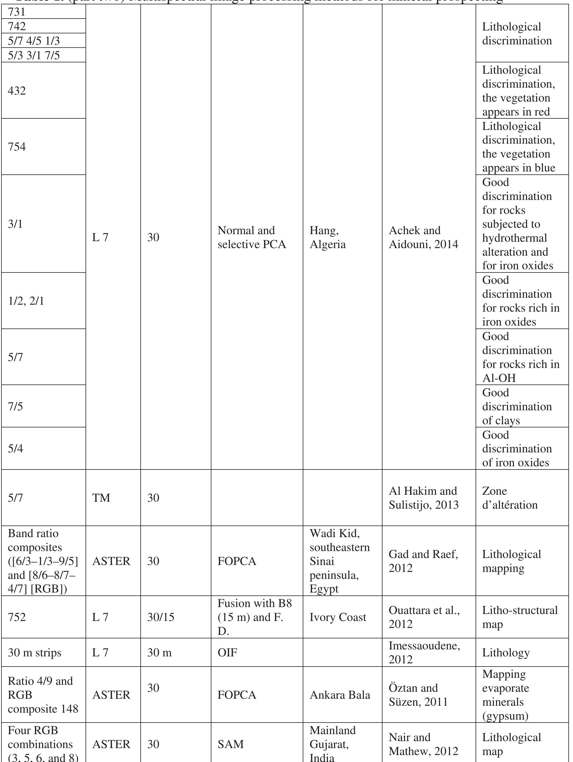 The discovery of natural resources remains the main mission of Earth observation satellites, espe... more The discovery of natural resources remains the main mission of Earth observation satellites, especially in geographical areas that have a very difficult accessibility as those of the Bou Azzer–El Graara inlier (Central Anti-Atlas, Morocco). This work investigates the use of different satellite data, such as Sentinel-2A’s multispectral imagery, in order to direct the prospection program in an efficient manner, saving both time and cost. The image processing methods of Landsat 7, 8, and “Advanced Spaceborne Thermal Emission and Reflection Radiometer (ASTER)” (30 m/15 m) were used to create methods for Sentinel-2A images (10 m). The red, green, blue (RGB) image 12.8.2, 11/12.11/2.11/8, principal component (PC) 1,2,3(11.12.2), and other new images were the result of principal component analysis (PCA), and classification by the Iterative Self-Organizing Data Analysis Technique (ISODATA) and K-Means allowed realization of a lithological cartography as well as maps of lineaments through di...