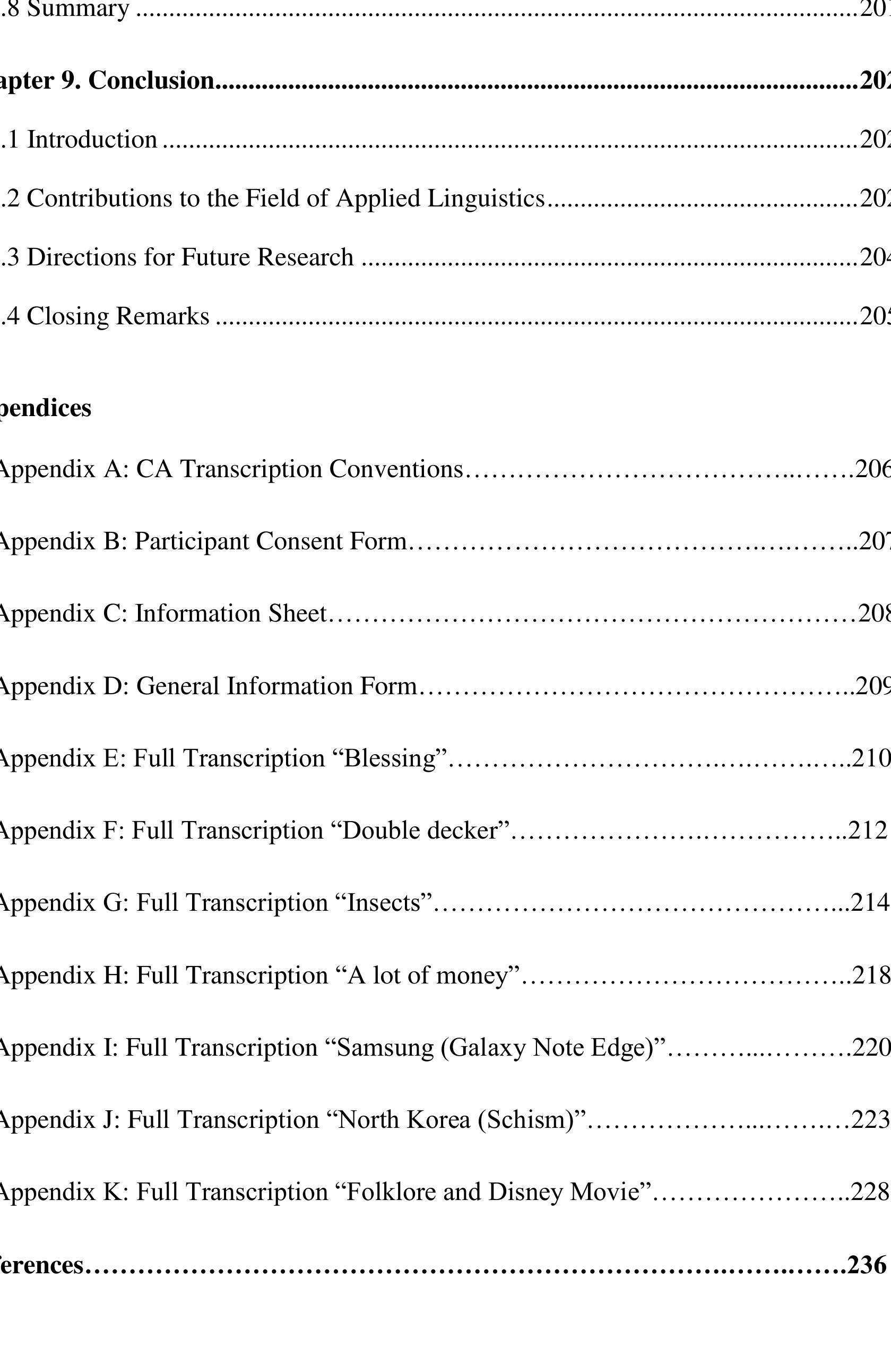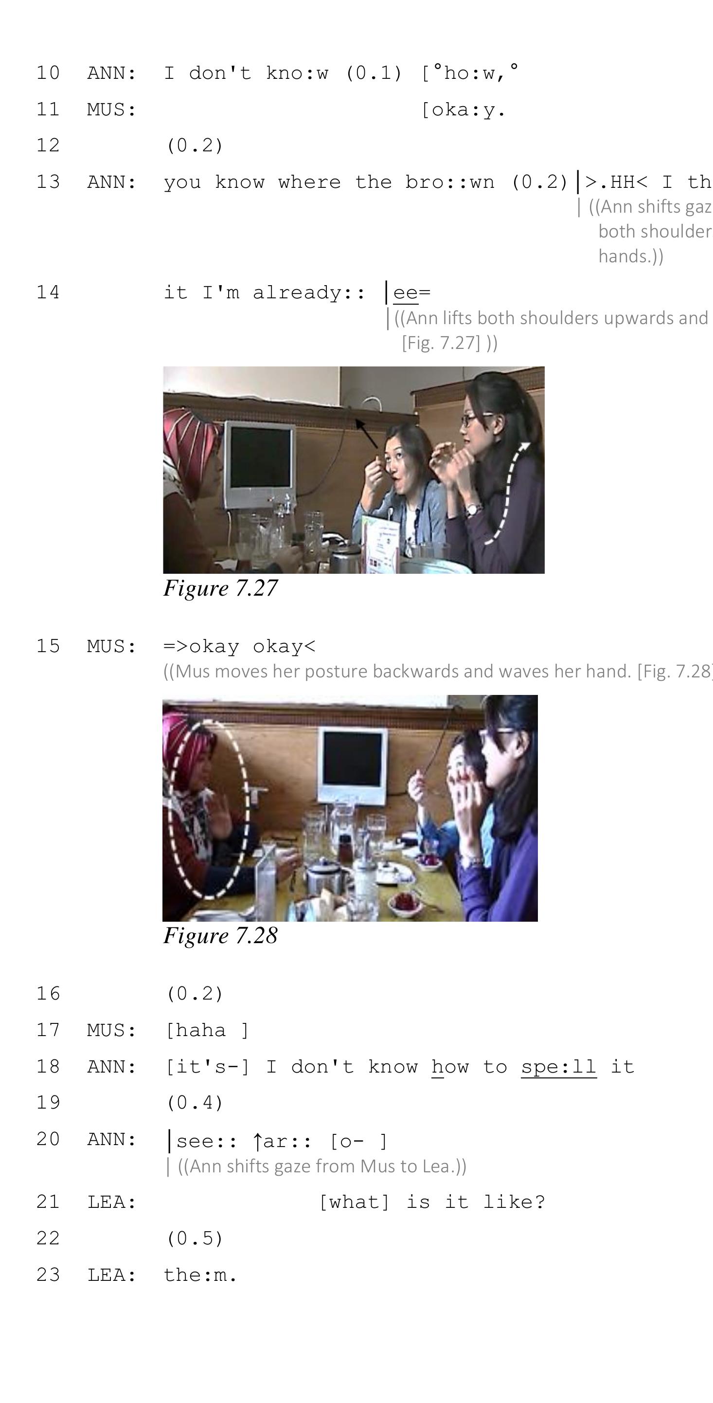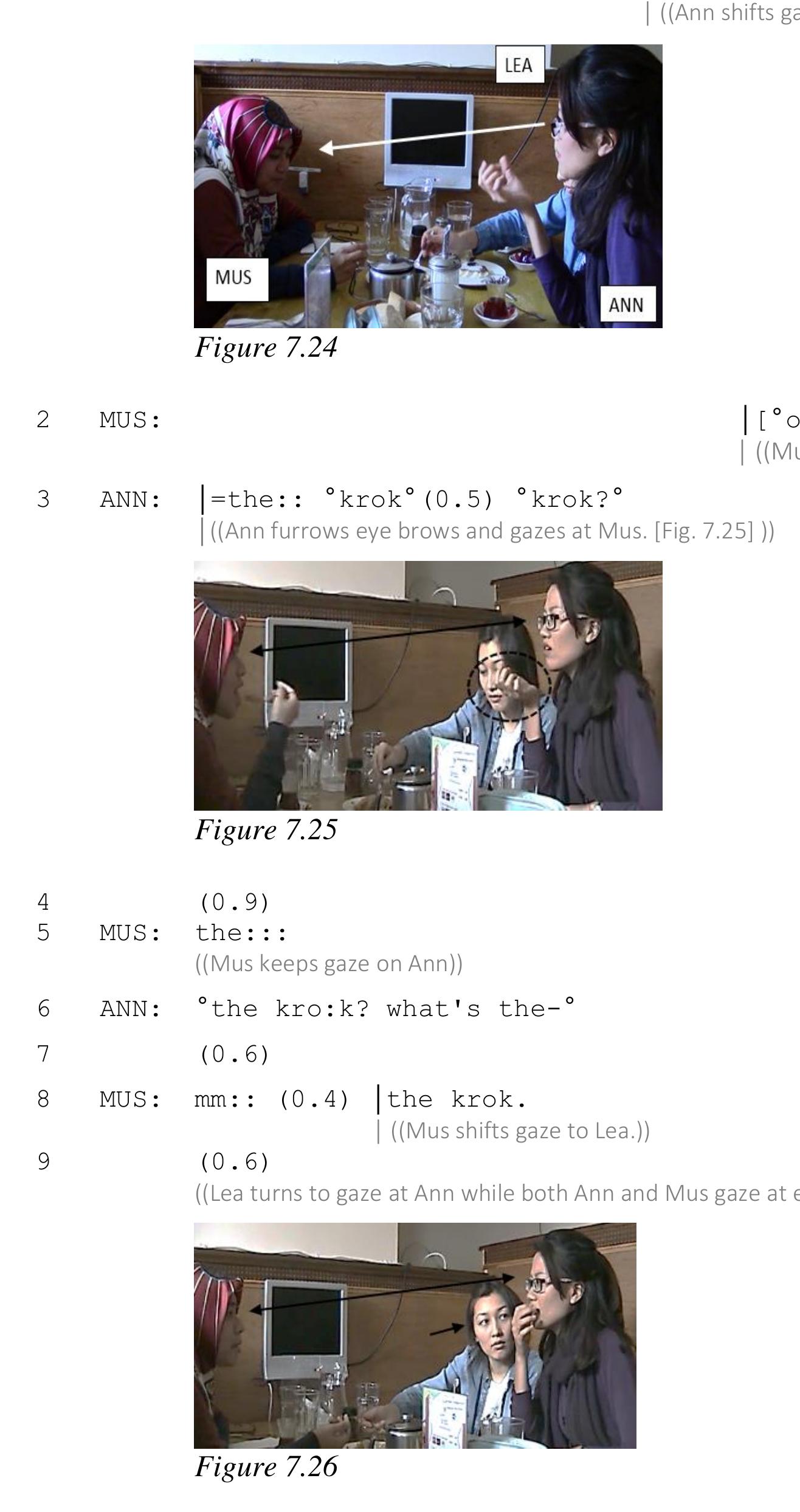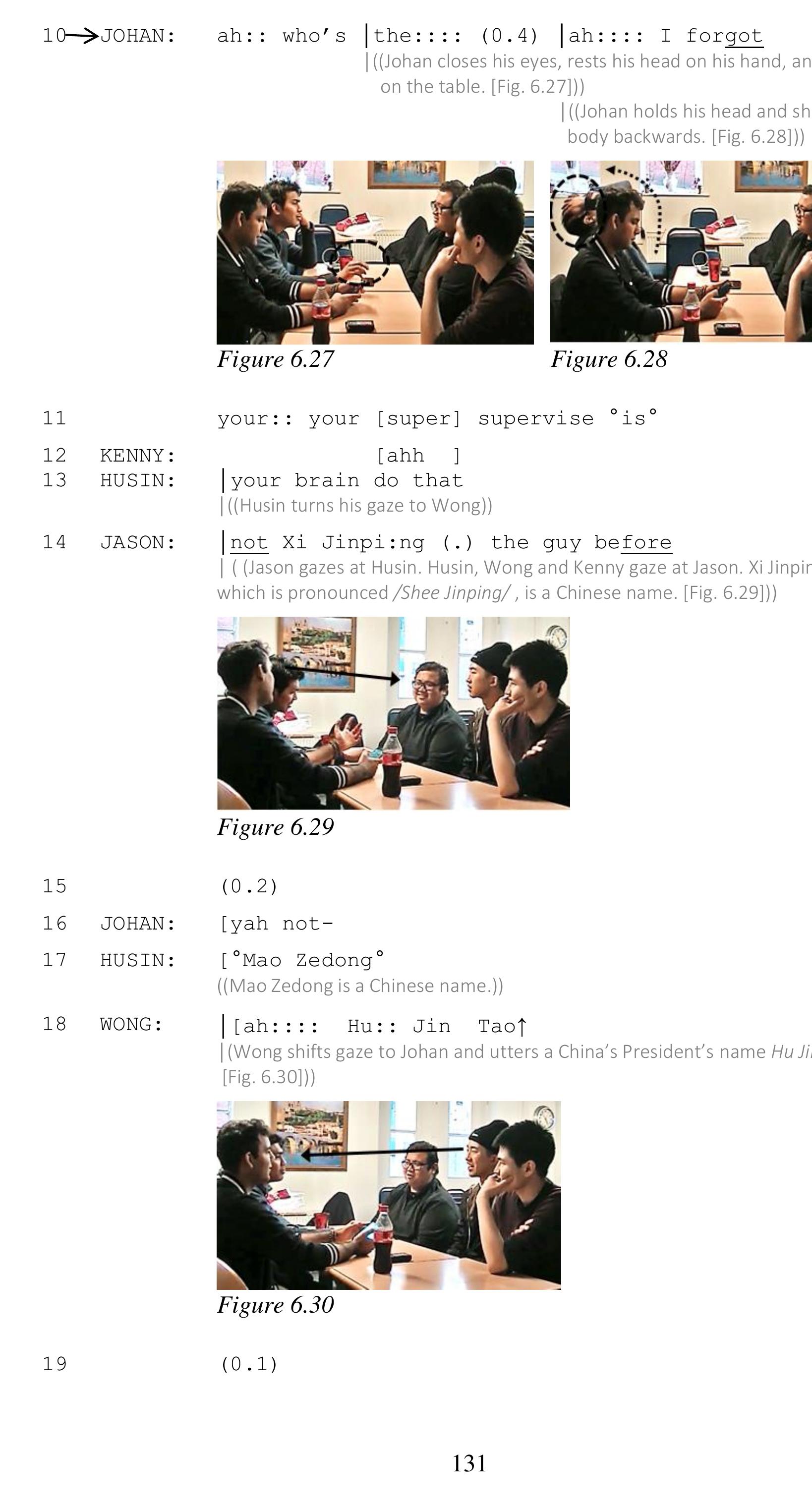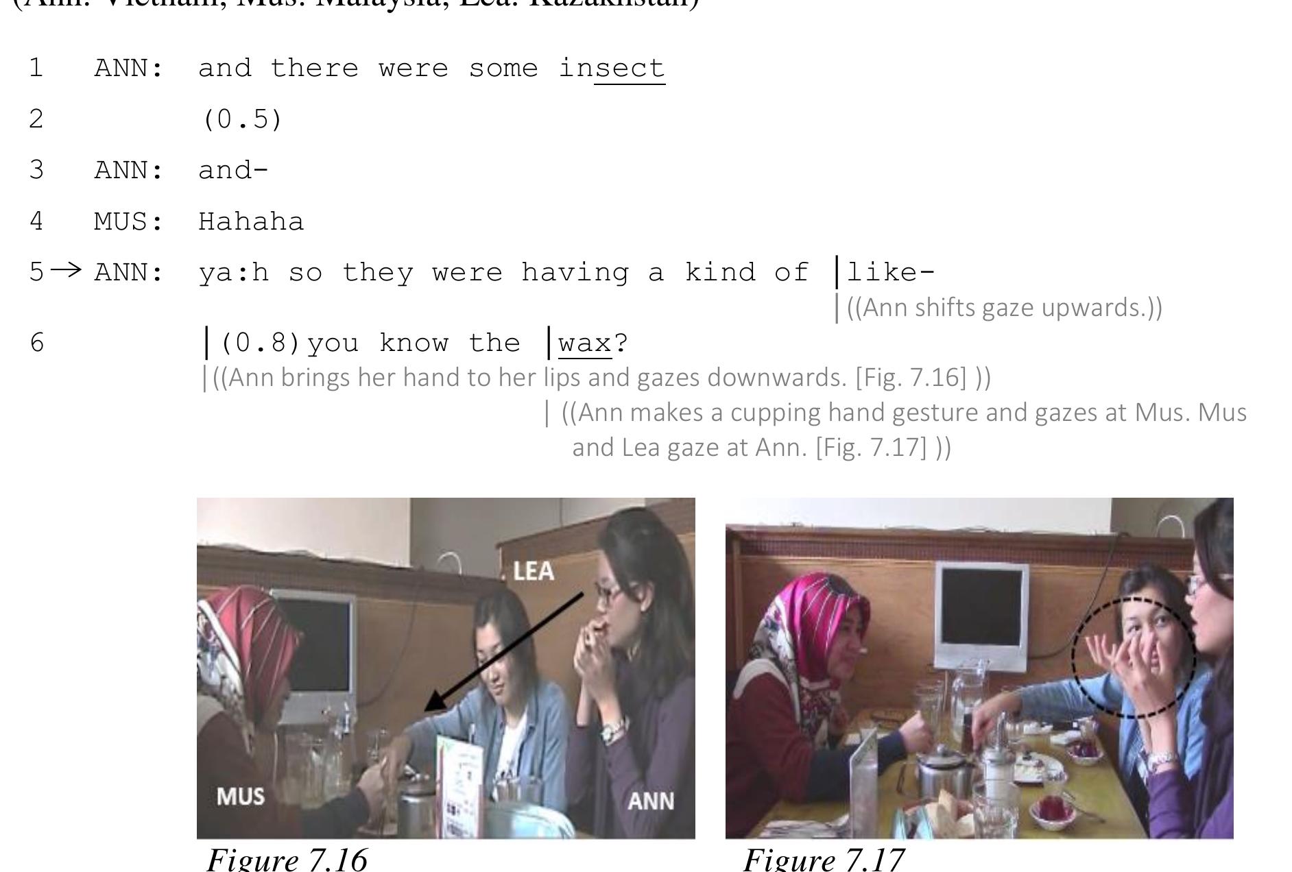 Studies on face-to-face interactions have demonstrated how spoken language involves not only verb... more Studies on face-to-face interactions have demonstrated how spoken language involves not only verbal but also a mutual collaboration with embodied actions. Embodied actions, such as gaze, gestures, body posture and physical movement are part and parcel of the details of ordered social interaction, and they can be significant resources in interaction (Hazel et al., 2014). This study has investigated the embodied actions displayed in word search phenomenon in L2 interaction. Word search is regarded as a type of self-initiation repair in which the progressivity of the speaker's indebted to the Kulliyyah of Languages and Management and the International Islamic University of Malaysia for giving me the opportunity to make a step forward to pursue my PhD and providing me with further support during my research. I wish to thank my close friend Anna Zareena for helping me get through the difficult times, providing the emotional support, and going out with me for coffee breaks. My thanks also go to my friends Somporn,