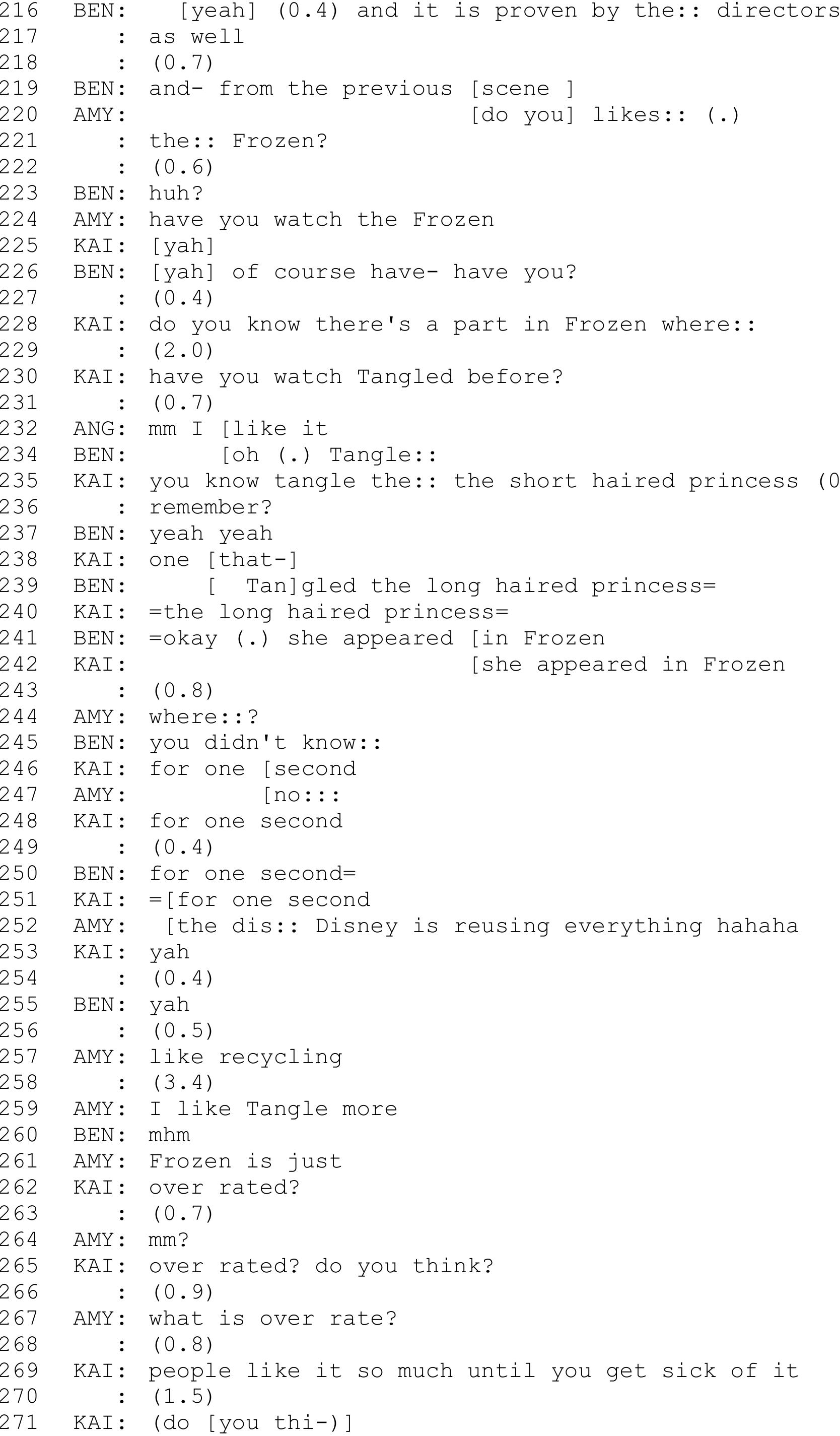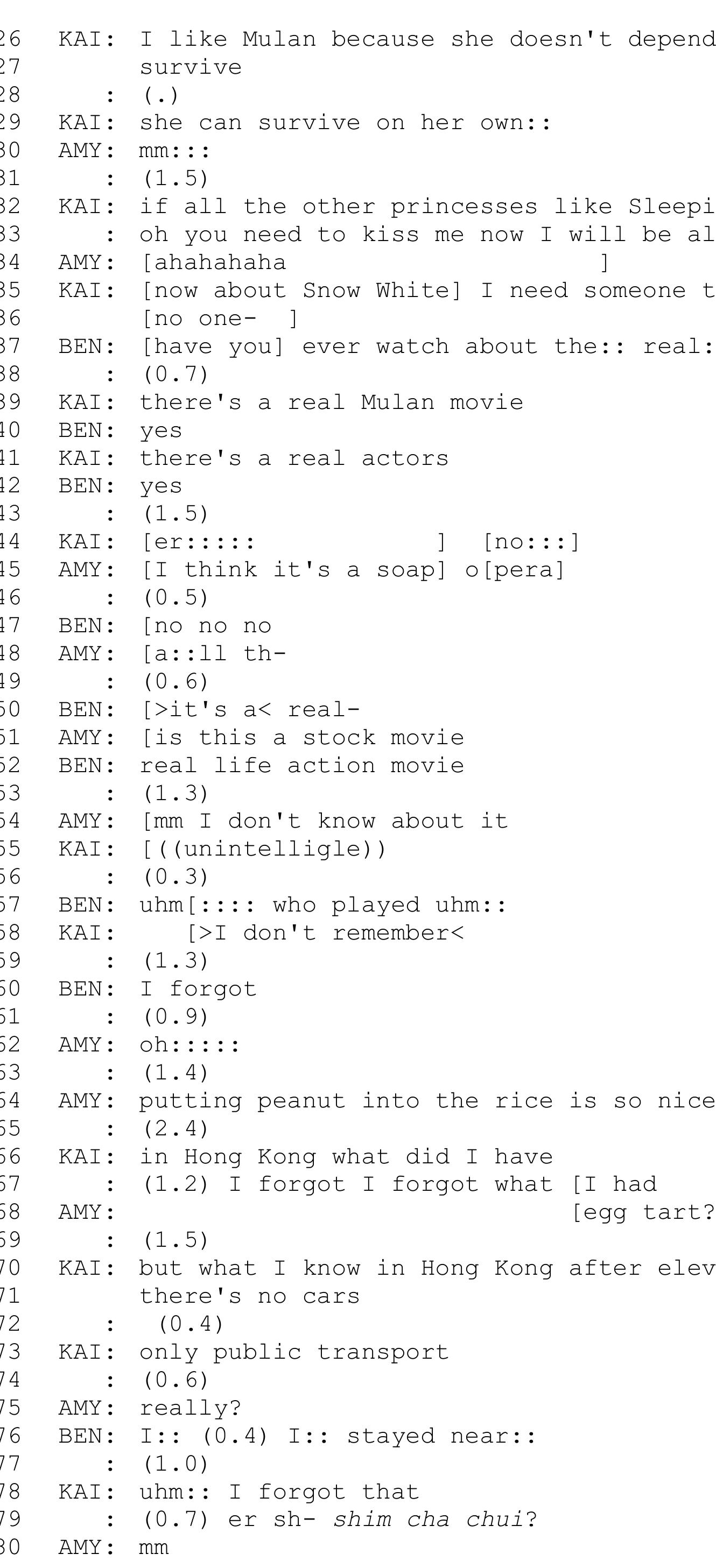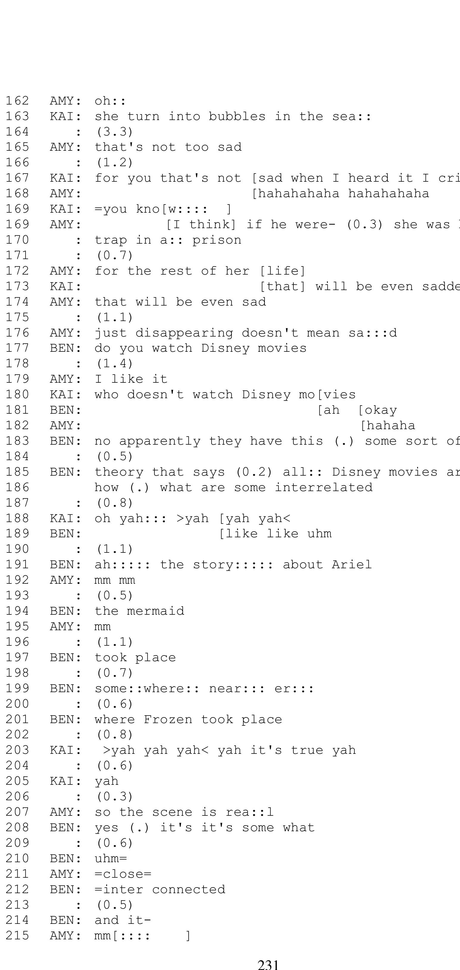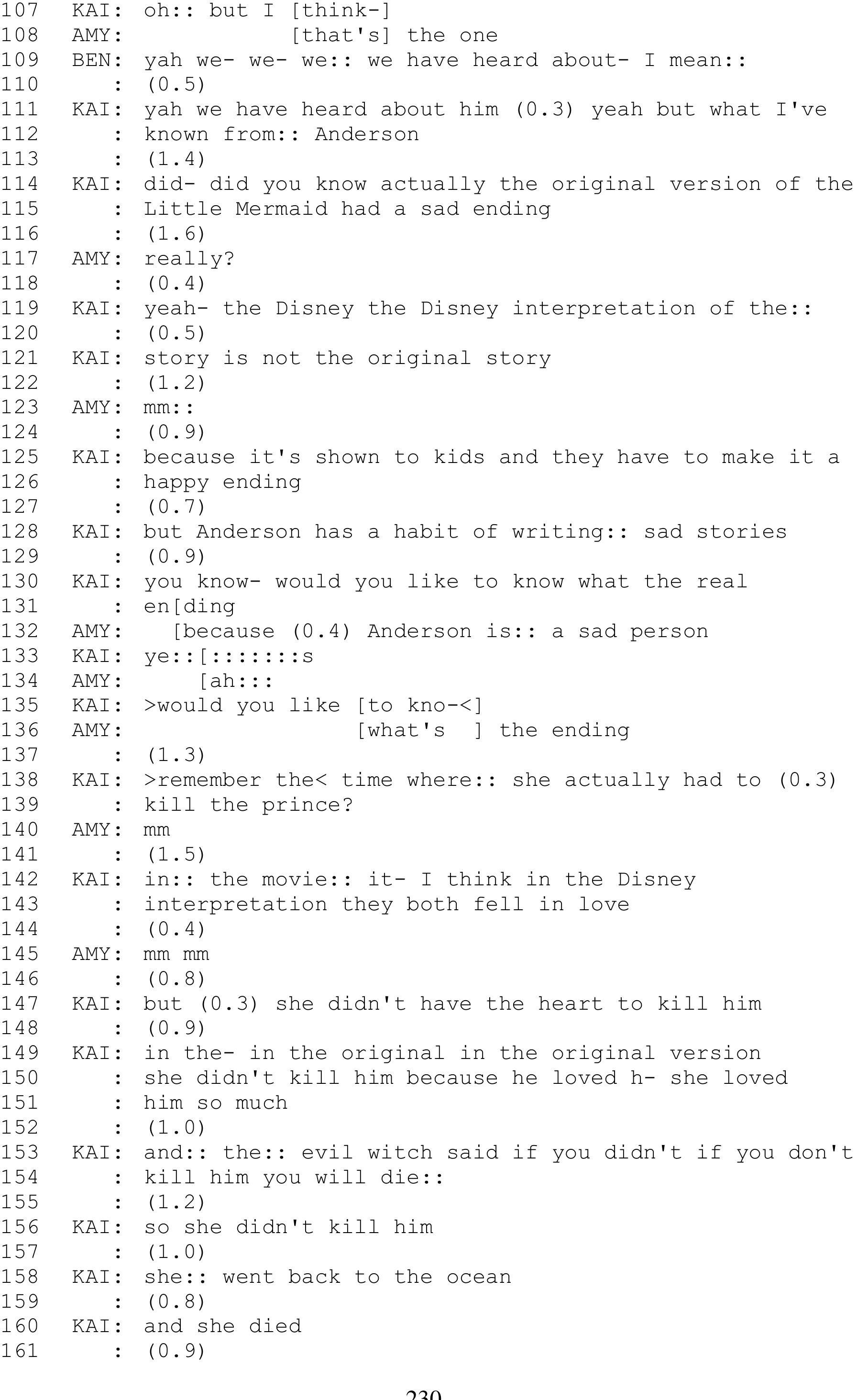 The focus of this study is to investigate what do international students do ‘in the wild’, that i... more The focus of this study is to investigate what do international students do ‘in the wild’, that is, in a mundane, everyday, out-of-classroom second language talk. In face-to-face interactions, spoken language involves not only verbal but also a mutual collaboration with other non-linguistics resources, such as gaze, gestures and bodily behaviour (Goodwin, 1981). This study aims to add to the growing body of second language (L2) research which goes ‘beyond the language classroom’, outside educational settings (Firth and Wagner, 1997; Wagner, 2004) particularly among L2 speakers who do not share the first language. The data for this study consists of casual conversation among international university students having dinner at a cafe which is video-recorded. Using conversation analysis or sometimes referred to as ‘CA-SLA’ (Kasper and Wagner, 2011), this study aims to explore how participants with different language background exploit language and other non-linguistic resources in secon...