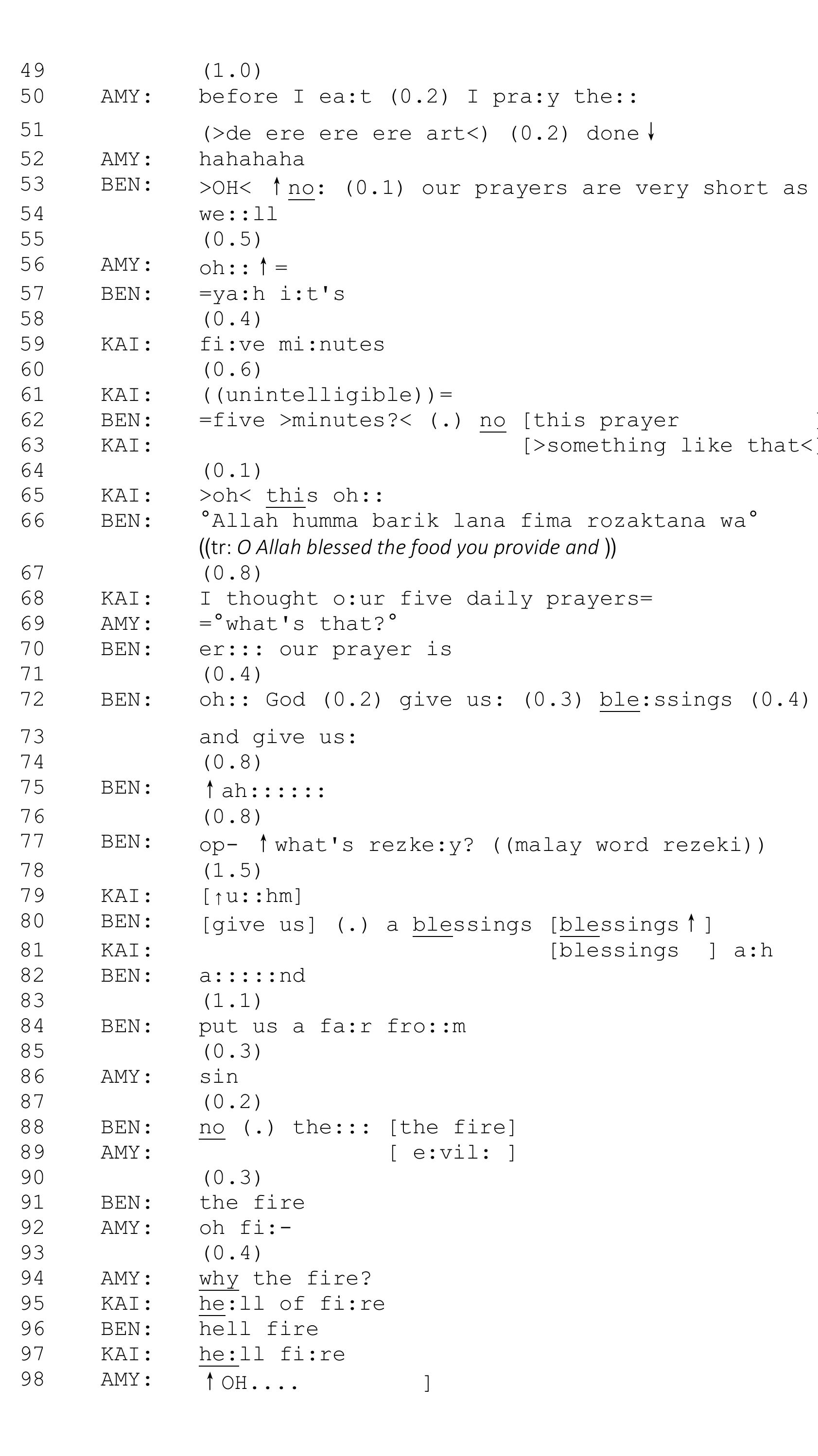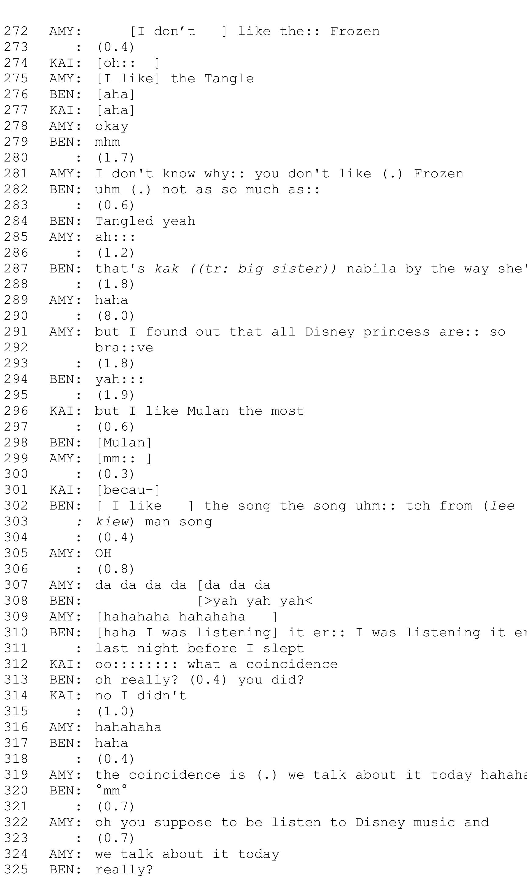 Interruption in conversation does not necessarily have to be negative as it could also be viewed ... more Interruption in conversation does not necessarily have to be negative as it could also be viewed as something positive such as for maintaining and progressing a conversation (Amalia, 2016; Li, 2001). This paper explored interruption practices in a Malaysian television (TV) talk show called the DOPStv (Deen of Peace Studios), an Islamic lifestyle talk