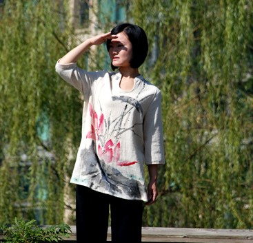 Embrace traditional elegance with this loose-fitting Chinese linen top featuring a serene ink wash painting print of nature. Crafted from breathable natural fabric, it offers superior comfort for Tai Chi practice, meditation, or relaxed daily wear. The design showcases classic Asian aesthetics with wide sleeves and a subtle collar, making it perfect for tea ceremonies. This versatile blouse blends cultural heritage with modern comfort, ideal for anyone who appreciates oriental art and style.