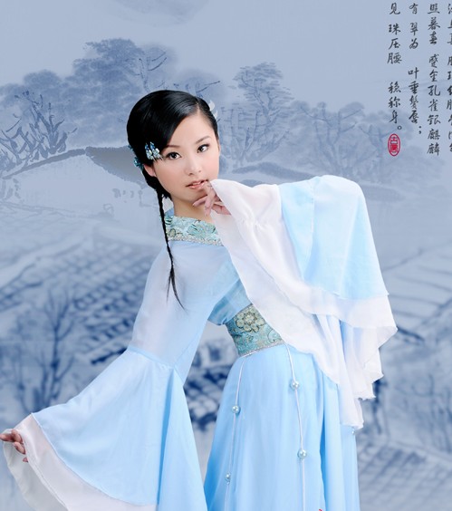Embrace the elegance of ancient China with this stunning light blue Hanfu, featuring delicate floral embroidery along the collar and waist sash. Crafted from flowing, lightweight fabric, the wide bell sleeves and tiered skirt create a graceful silhouette perfect for classical dance or traditional photography. This authentic-style costume captures the ethereal beauty of a lotus fairy, making it an ideal choice for cultural performances, festivals, or cosplay events.